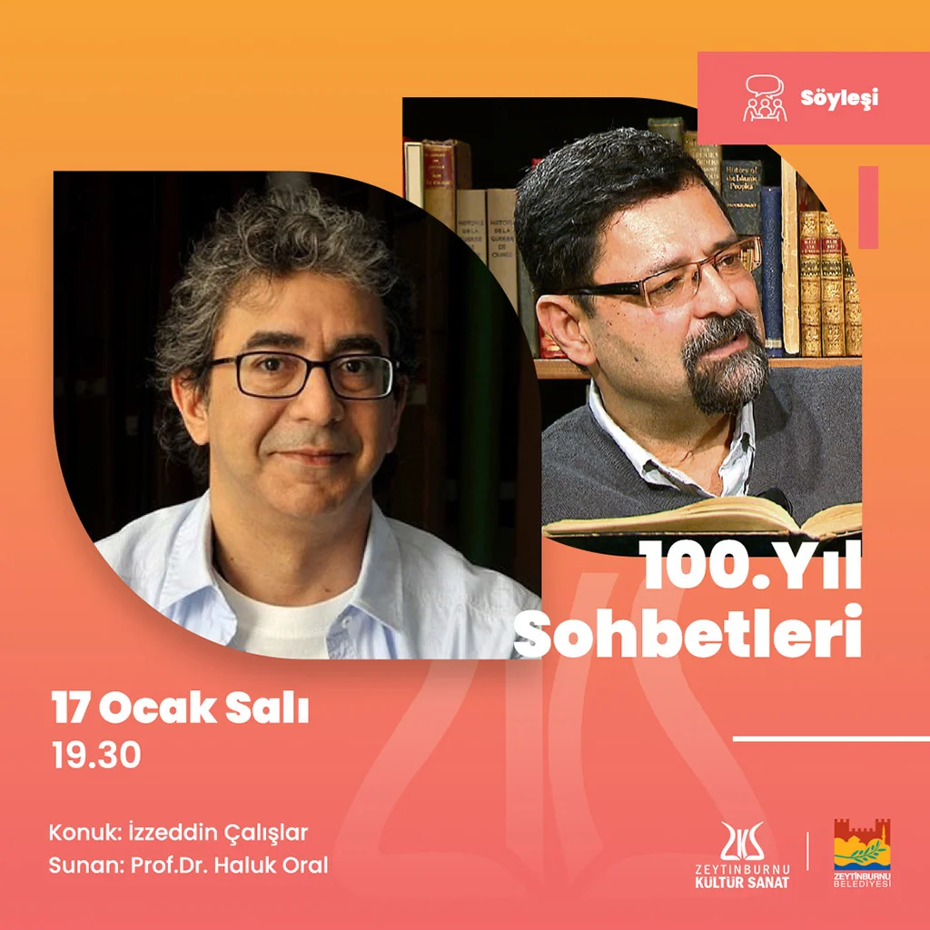 Zeytinburnu Kültür Sanat’ta bu sezon birbirinden kıymetli konuklarla Cumhuriyetimizin 100 yılının konuşulduğu 100. Yıl Sohbetleri programının üçüncü konuğu İzzeddin Çalışlar oldu. Prof. Dr. Haluk Oral’ın sunduğu program 17 Ocak akşamı saat 19.30’da başladı.