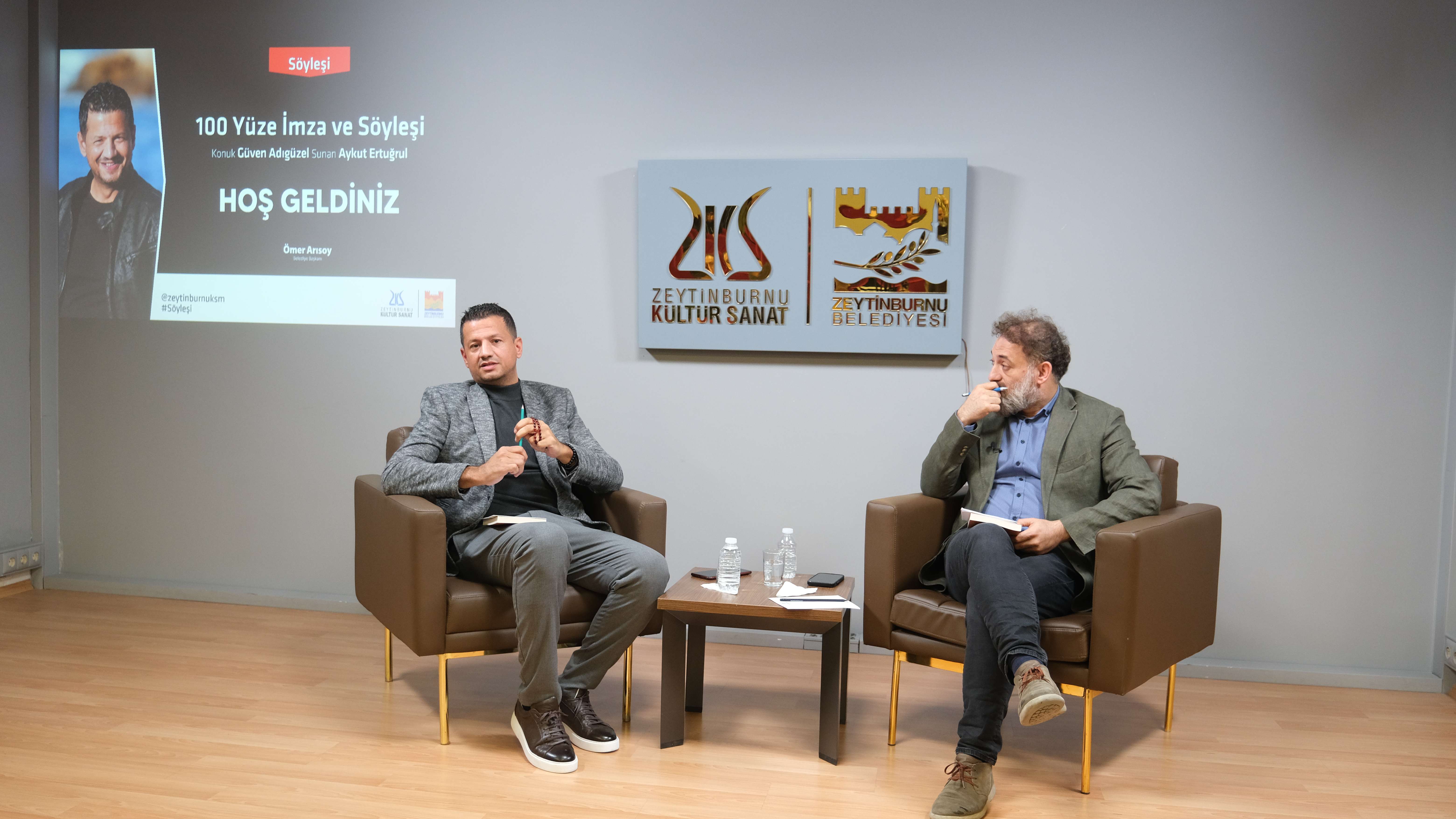Zeytinburnu Kültür Sanat’ta, 100 Yüze İmza ve Söyleşi programının 2024-2025 sezonundaki ilk söyleşisi gerçekleşti. Aykut Ertuğrul’un sunumuyla, 24 Ekim Perşembe akşamı saat 19.30’da başlayan söyleşinin konuğu şair ve yazar Güven Adıgüzel oldu. Adıgüzel’in “Hayvanlar Kitabı” adlı eserinden hareket edilerek yazarın tabiata ve edebiyata bakışı hakkında konuşuldu.