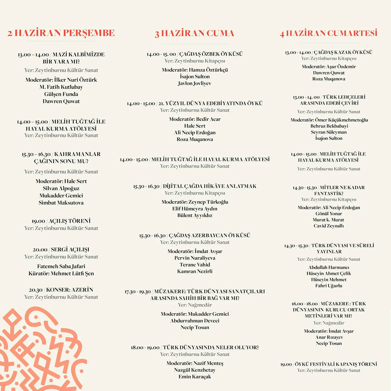 4. ZEYTİNBURNU TÜRK DÜNYASI ÖYKÜ FESTİVALİ 24 May 2022 Görsel Galeri ❮ ❯ 1 / 3 Son Galeriler 🔍 MEZUNİYET SERGİSİ VE ŞÖLENİ, 14 HAZİRAN CUMARTESİ GÜNÜ ZEYTİNBURNU KÜLTÜR SANAT’TA GERÇEKLEŞTİ! 14.06.2025 🔍 MEZUNİYET SERGİSİ VE ŞÖLENİ, 14 HAZİRAN CUMARTESİ GÜNÜ ZEYTİNBURNU KÜLTÜR SANAT’TA! 12.06.2025 🔍 KAZLIÇEŞME SANAT KONUŞMALARINDA SEZONUN SON KONUĞU NAMIK SİNAN TURAN OLDU! 10.06.2025 🔍 BAŞKA SORULAR SÖYLEŞİ PROGRAMINDA SEZONUN SON KONUĞU PROF. DR. GÜLÇİN YAHYA KAÇAR OLDU! 02.06.2025 🔍 100 YÜZE İMZA VE SÖYLEŞİ PROGRAMINDA SEZONUN SON KONUĞU SADIK YALSIZUÇANLAR OLDU! 30.05.2025 🔍 ZKS 26 MAYIS-1 HAZİRAN HAFTALIK ETKİNLİK TAKVİMİ 26.05.2025 🔍 ZEYTİNBURNU KİTAPÇISI BULUŞMALARI’NDA SEZONUN SON KONUĞU PROF. DR. MEHMET SAMSAKÇI OLDU! 24.05.2025 🔍 NABİ AVCI’NIN KONUK OLDUĞU PEYAM-I GARB’TA SEZONUN SON PROGRAMI GERÇEKLEŞTİ! 23.05.2025