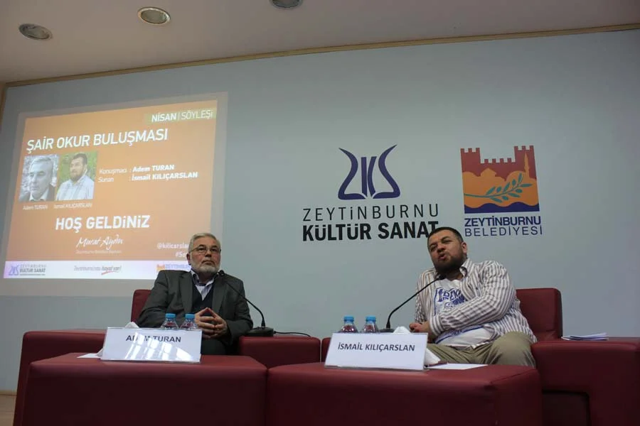 Adem Turan İsmail Kılıçaslan 23 Eki 2019 Görsel Galeri ❮ ❯ 1 / 4 Son Galeriler 🔍 MEZUNİYET SERGİSİ VE ŞÖLENİ, 14 HAZİRAN CUMARTESİ GÜNÜ ZEYTİNBURNU KÜLTÜR SANAT’TA GERÇEKLEŞTİ! 14.06.2025 🔍 MEZUNİYET SERGİSİ VE ŞÖLENİ, 14 HAZİRAN CUMARTESİ GÜNÜ ZEYTİNBURNU KÜLTÜR SANAT’TA! 12.06.2025 🔍 KAZLIÇEŞME SANAT KONUŞMALARINDA SEZONUN SON KONUĞU NAMIK SİNAN TURAN OLDU! 10.06.2025 🔍 BAŞKA SORULAR SÖYLEŞİ PROGRAMINDA SEZONUN SON KONUĞU PROF. DR. GÜLÇİN YAHYA KAÇAR OLDU! 02.06.2025 🔍 100 YÜZE İMZA VE SÖYLEŞİ PROGRAMINDA SEZONUN SON KONUĞU SADIK YALSIZUÇANLAR OLDU! 30.05.2025 🔍 ZKS 26 MAYIS-1 HAZİRAN HAFTALIK ETKİNLİK TAKVİMİ 26.05.2025 🔍 ZEYTİNBURNU KİTAPÇISI BULUŞMALARI’NDA SEZONUN SON KONUĞU PROF. DR. MEHMET SAMSAKÇI OLDU! 24.05.2025 🔍 NABİ AVCI’NIN KONUK OLDUĞU PEYAM-I GARB’TA SEZONUN SON PROGRAMI GERÇEKLEŞTİ! 23.05.2025