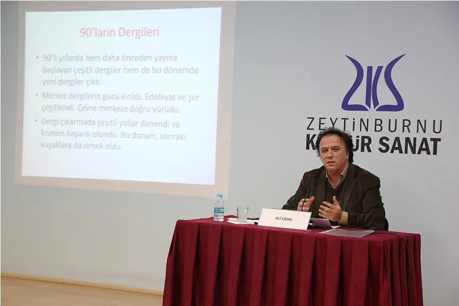 Ali Emre – `Şiirimizde 90’lar` 23 Eki 2019 Görsel Galeri ❮ ❯ 1 / 3 Son Galeriler 🔍 MEZUNİYET SERGİSİ VE ŞÖLENİ, 14 HAZİRAN CUMARTESİ GÜNÜ ZEYTİNBURNU KÜLTÜR SANAT’TA GERÇEKLEŞTİ! 14.06.2025 🔍 MEZUNİYET SERGİSİ VE ŞÖLENİ, 14 HAZİRAN CUMARTESİ GÜNÜ ZEYTİNBURNU KÜLTÜR SANAT’TA! 12.06.2025 🔍 KAZLIÇEŞME SANAT KONUŞMALARINDA SEZONUN SON KONUĞU NAMIK SİNAN TURAN OLDU! 10.06.2025 🔍 BAŞKA SORULAR SÖYLEŞİ PROGRAMINDA SEZONUN SON KONUĞU PROF. DR. GÜLÇİN YAHYA KAÇAR OLDU! 02.06.2025 🔍 100 YÜZE İMZA VE SÖYLEŞİ PROGRAMINDA SEZONUN SON KONUĞU SADIK YALSIZUÇANLAR OLDU! 30.05.2025 🔍 ZKS 26 MAYIS-1 HAZİRAN HAFTALIK ETKİNLİK TAKVİMİ 26.05.2025 🔍 ZEYTİNBURNU KİTAPÇISI BULUŞMALARI’NDA SEZONUN SON KONUĞU PROF. DR. MEHMET SAMSAKÇI OLDU! 24.05.2025 🔍 NABİ AVCI’NIN KONUK OLDUĞU PEYAM-I GARB’TA SEZONUN SON PROGRAMI GERÇEKLEŞTİ! 23.05.2025