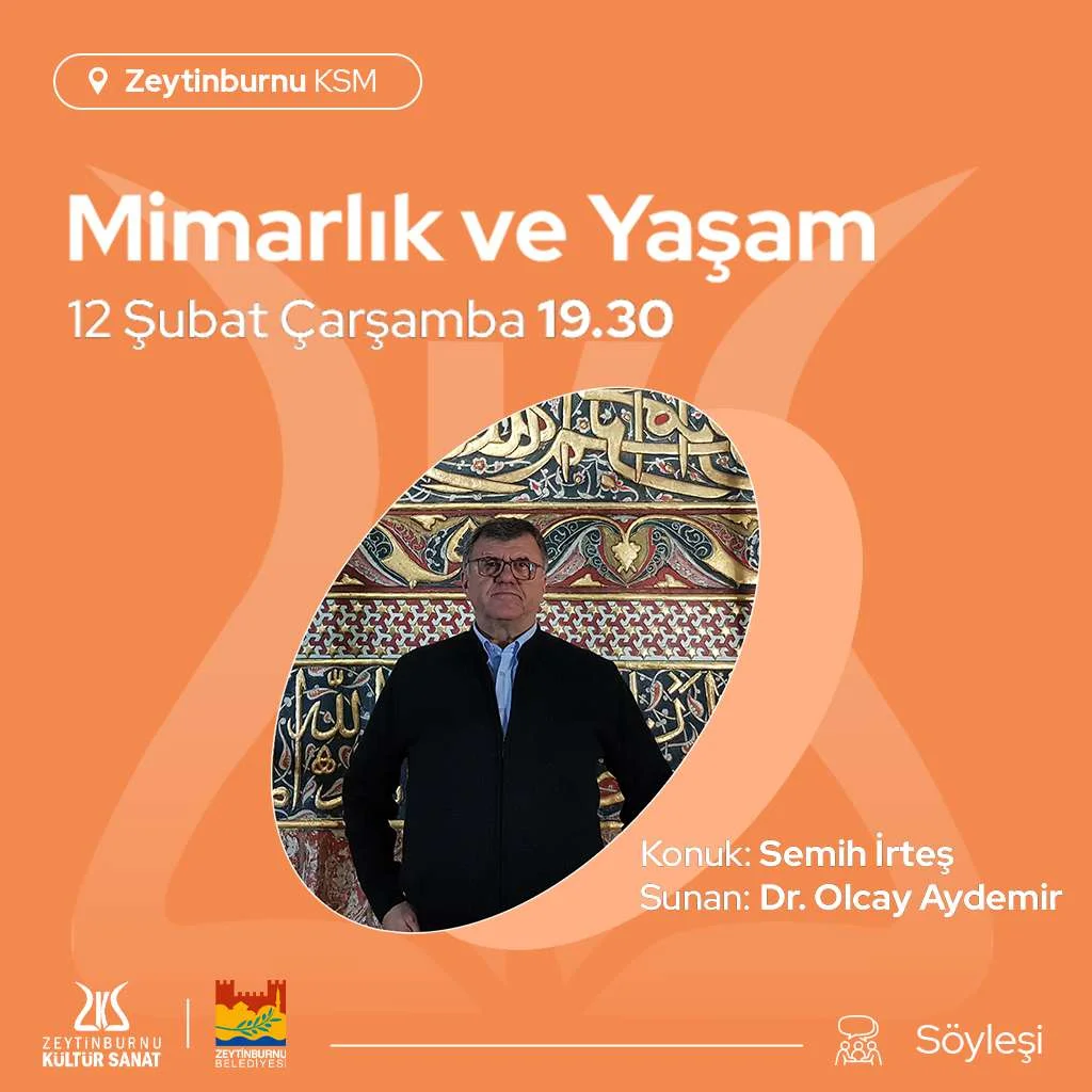Dr. Olcay Aydemir’in sunumuyla Mimarlık ve Yaşam Söyleşileri, Zeytinburnu Kültür Sanat’ta devam ediyor. 12 Şubat Çarşamba akşamı saat 19.30’da gerçekleşen söyleşinin konuğu mimar ve nakkaş Semih İrteş oldu. Söyleşide İstanbul ve Edirne’deki anıtsal yapılar üzerinden Mimar Sinan dönemi kalemişi bezeme sanatı hakkında konuşuldu.