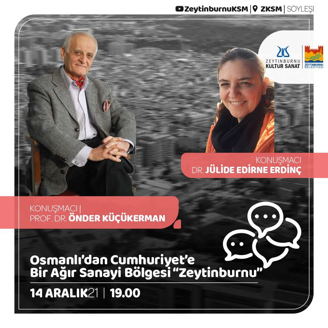 Zeytinburnu Kültür Sanat, 14 Aralık’ta Osmanlı’dan Cumhuriyet’e Bir Ağır Sanayi Bölgesi “Zeytinburnu” kitabının yazarları Prof. Dr. Önder Küçükerman ve Dr. Jülide Edirne Erdinç’i misafir etti. Programda Zeytinburnu bölgesinin ağır sanayi bölgesi olması, savaş ve günlük hayata katkısı, sanayide uygulanan girişimlerin fabrika mimarisine yansımaları ile birlikte pek çok konu konuşuldu.
