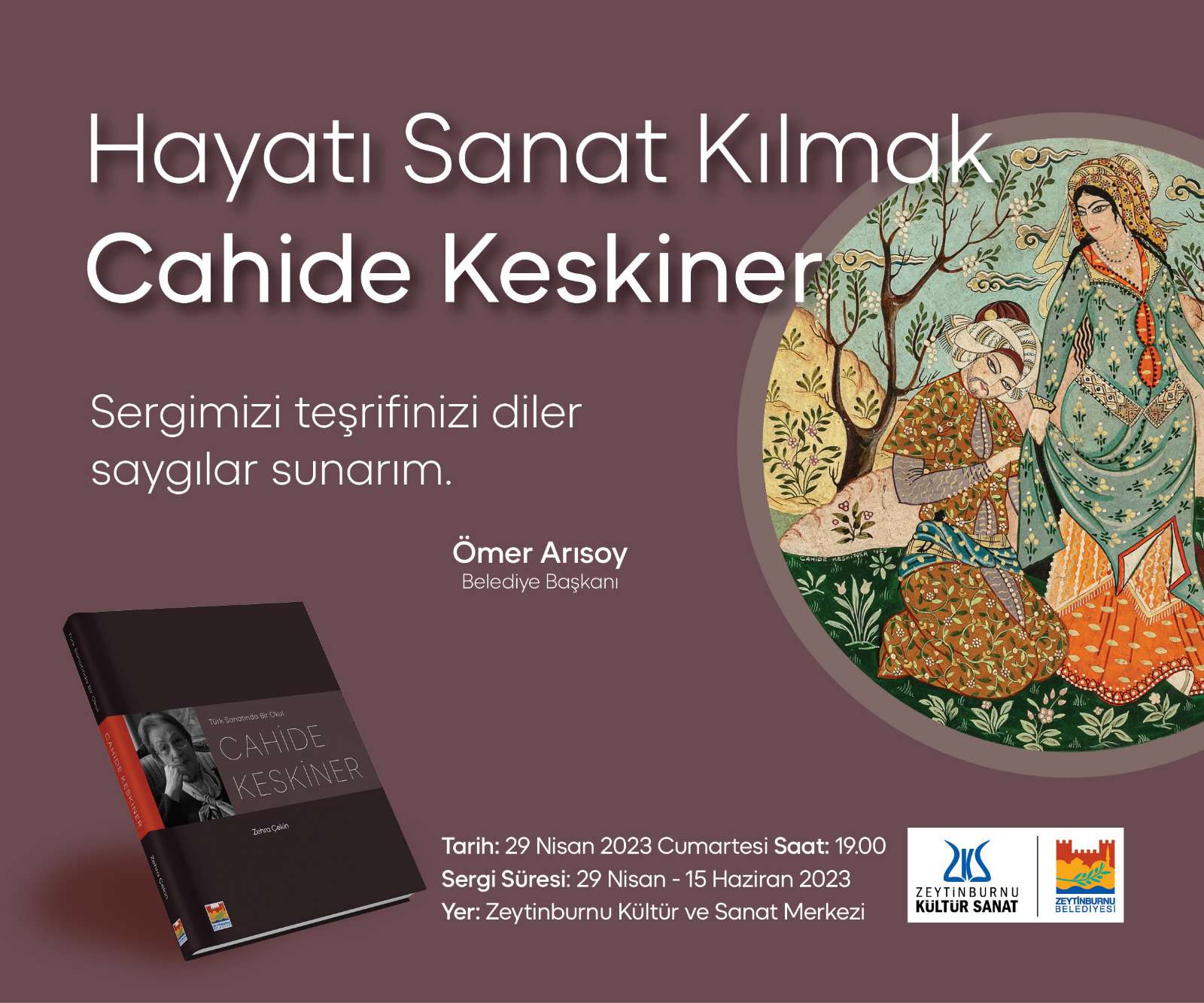 Yüzyılımızın en önemli sanat ufukları ve kuramsal zekâları arasında yer alan Cahide Keskiner’i konu alan bu özel serginin 29 Nisan Cumartesi akşamı saat 19.00’da Zeytinburnu Kültür ve Sanat Merkezi’nde yapılacak açılış törenine teşrifinizi dileriz.