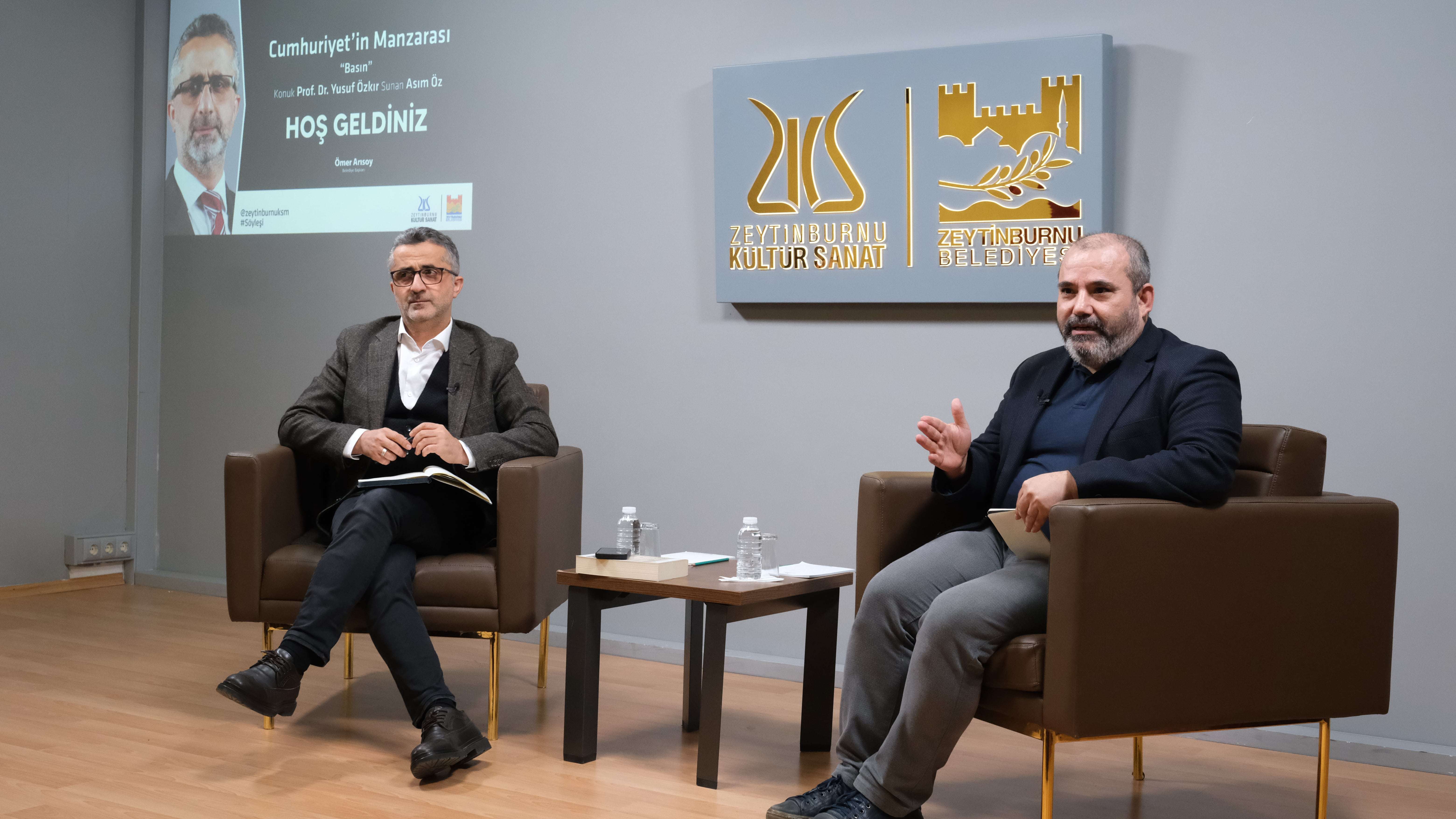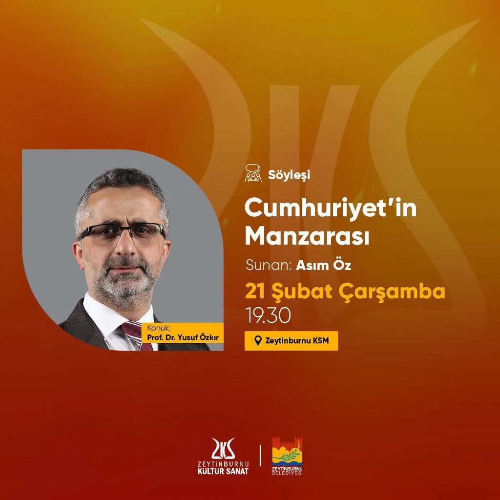 Zeytinburnu Kültür Sanat’ta bu sezon birbirinden kıymetli konuklarla Cumhuriyetimizin 100 yılının konuşulduğu Cumhuriyet’in Manzarası programının Şubat ayı konuğu Prof. Dr. Yusuf Özkır oldu. Asım Öz’ün sunduğu program 21 Şubat akşamı saat 19.30’da başladı.