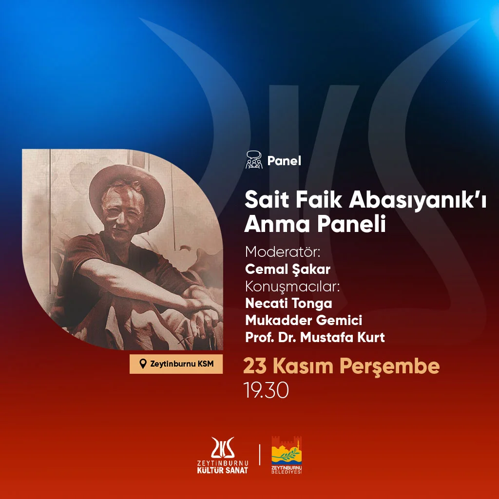 “Yazmasaydım deli olacaktım.” diyecek kadar yazmaya bağlı, yazmayı bir meşgalenin ötesinde bir hayat tarzına çevirmiş müstesna bir yazarımız olan Sait Faik Abasıyanık’ı doğumunun 117. yılında Zeytinburnu Kültür Sanat’ta bir panelle andık. Cemal Şakar’ın moderatörlüğünü üstlendiği panelin konuşmacıları Necati Tonga, Mukadder Gemici ve Prof. Dr. Mustafa Kurt oldu.