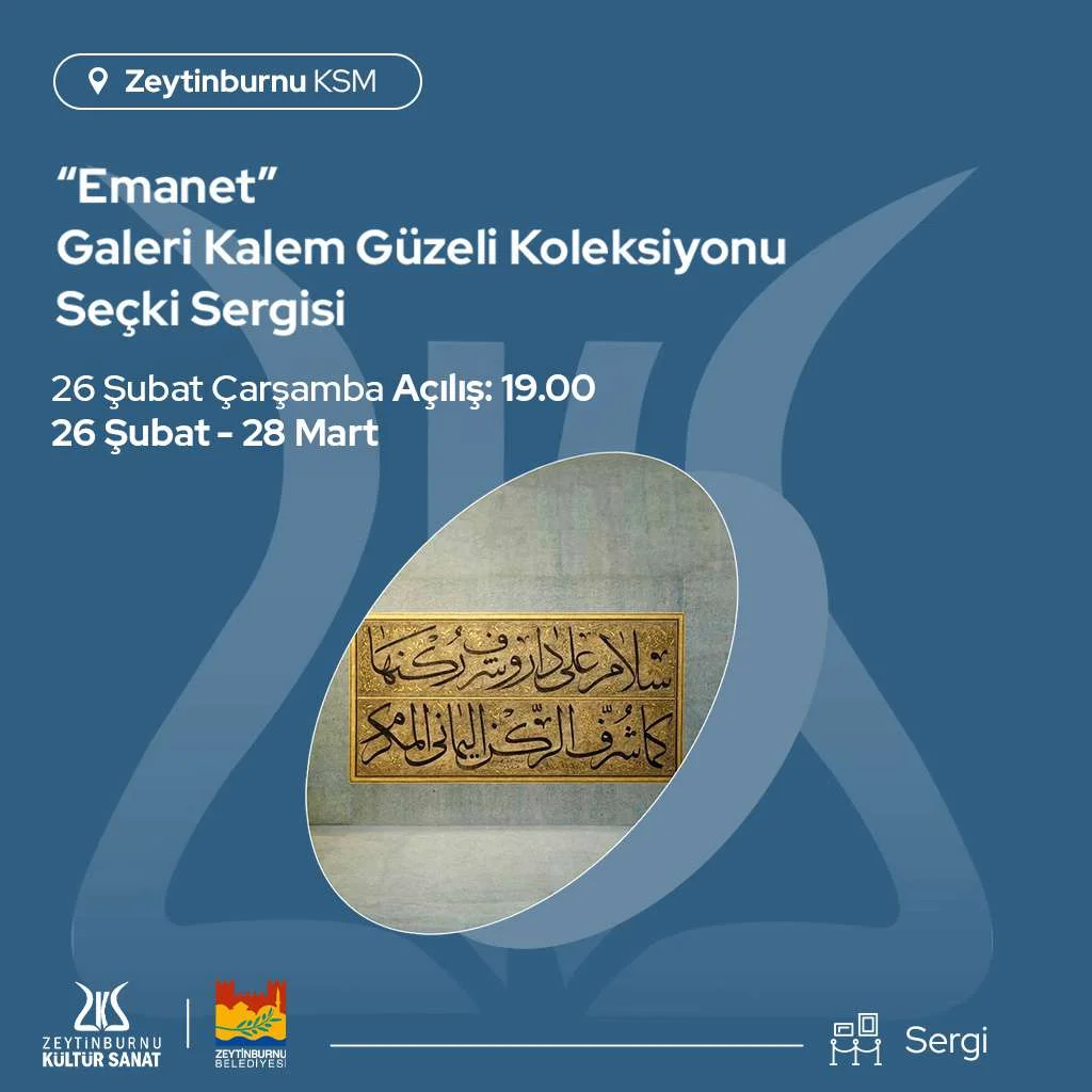 Galeri Kalem Güzeli, geleneksel sanatların icrasına, sergilenmesine ve geniş kitlelere ulaşmasına verdiği desteği 20. yılında da istikrarla sürdürüyor. Galeri Kalem Güzeli Koleksiyonundan yapılan seçkide 5 asır öncesinden günümüze çok değerli hat çalışmaları yer alıyor. Serginin Küratörü Mehmet Lütfi Şen, “Hat sanatı her devirde büyük sanatçıların geleneğe yeni büyük eserler eklemesiyle bütün dünyada saygı ve hayranlık uyandırmaya devam etmektedir. Bugün önemli olan bu geleneği kavramak, ona çağdaş imkânlar kazandırarak geleceğe kaynaklık edecek eserler yaratmaktır.” diyerek “Emanet” adlı seçkinin gayesini ve önemini vurguluyor. 26 Şubat Çarşamba günü saat 19.00’da açılışı gerçekleştirilen sergi, 28 Mart 2025 tarihine kadar ziyaret edilebilecek. “Emanet”, her gün saat sabah 10.00’dan gece 00.00’a kadar Zeytinburnu Kültür Sanat’ta ziyarete açık olacak.