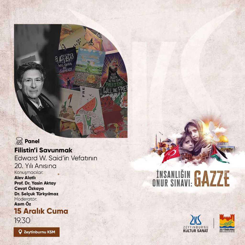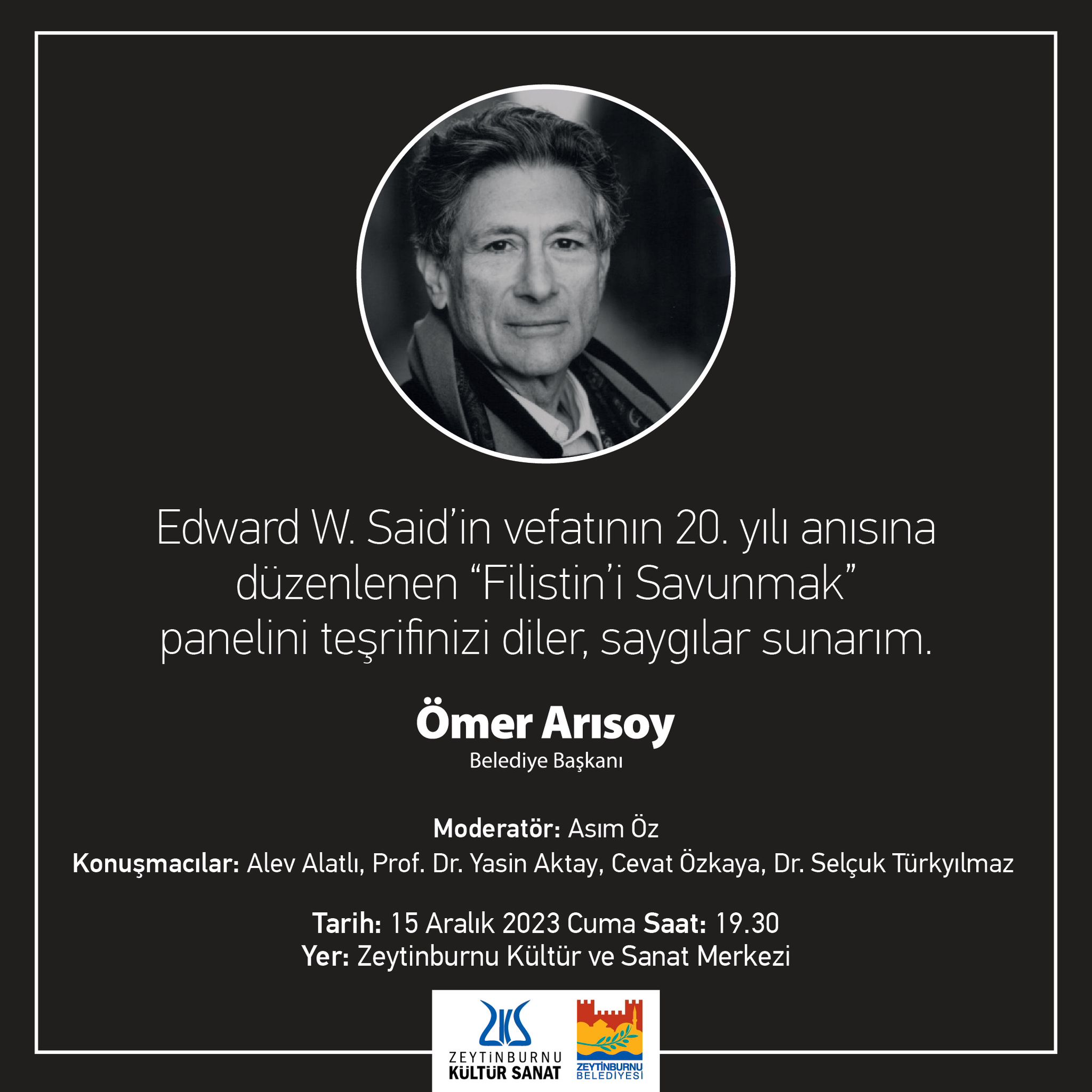 Geçen yüzyılın önde gelen entelektüellerinden Edward W. Said, 15 Aralık Cuma günü Zeytinburnu Kültür Sanat’ta bir panelle anılacak.