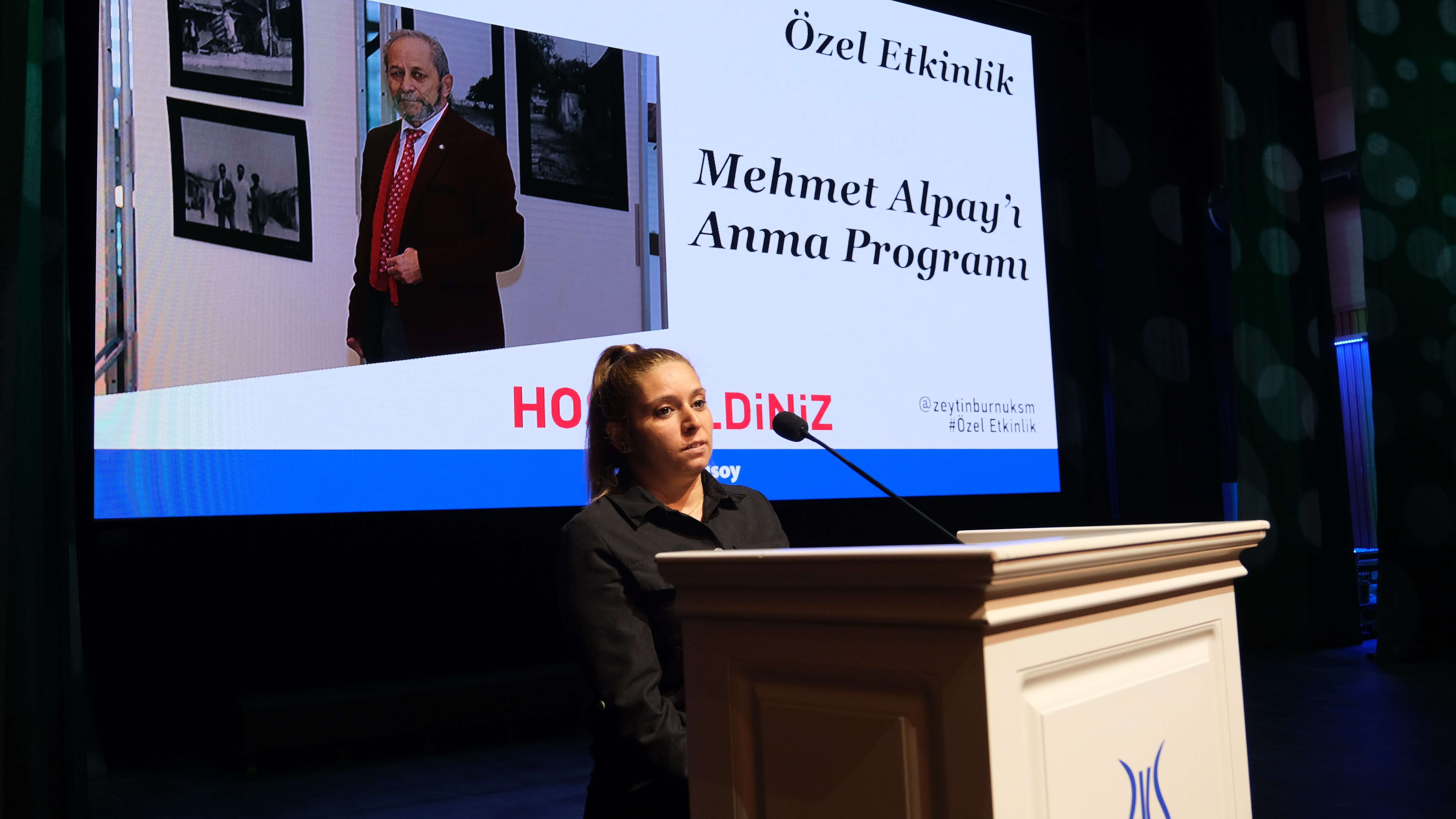 Başkan Ömer Arısoy’un konuşmasının hemen ardından Mehmet Alpay’la alakalı hazırlanan bir belgeselin gösterimi yapıldı. Gösterimden sonra ise bu kez sahneye konuşmasını yapmak üzere Gazeteci Taylan Demirel çıktı. Mehmet Alpay’la arkadaşlıklarından ve hatıralarından bahseden Demirel’den sonra ise sahneyi Gazeteci Osman İslam aldı. İslam da konuşmasında Mehmet Alpay’la geçen gazetecilik günlerinden ve Alpay’ın kendine has özelliklerinden bahsetti. Hemen ardından sahneye Selvi Sarıtaç çıktı. Sarıtaç’ın kısa konuşmasından sonra Mehmet Alpay’ın hem meslektaşı hem de yakın arkadaşlarından Gazeteci Hüseyin Çetiner’in hazırladığı video gösterildi. Çetiner, videoda Mehmet Alpay’ın hayatı hakkında bilgi verdi ve yine Alpay’la geçen hatıralarından bahsetti. Video gösteriminin arkasından Mehmet Alpay’ın oğlu Barış Karamul, onun ardından Alpay’ın kızı Gülşah Ennaç konuşmalarını yaptı. Konuşmaların tamamlanmasının ardından program, fotoğraf çekimleri ile son buldu.