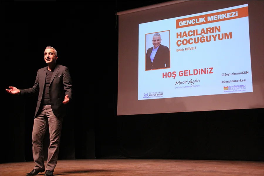 Zeytinburnu Belediyesi’nin 27 Ekim’de düzenlediği programda, Zeytinburnu Kültür ve Sanat Merkezi’nde sahne alan Bekir Develi, ‘Hacıların Çocuğuyum’ gösterisiyle gençlere keyifli dakikalar yaşattı.