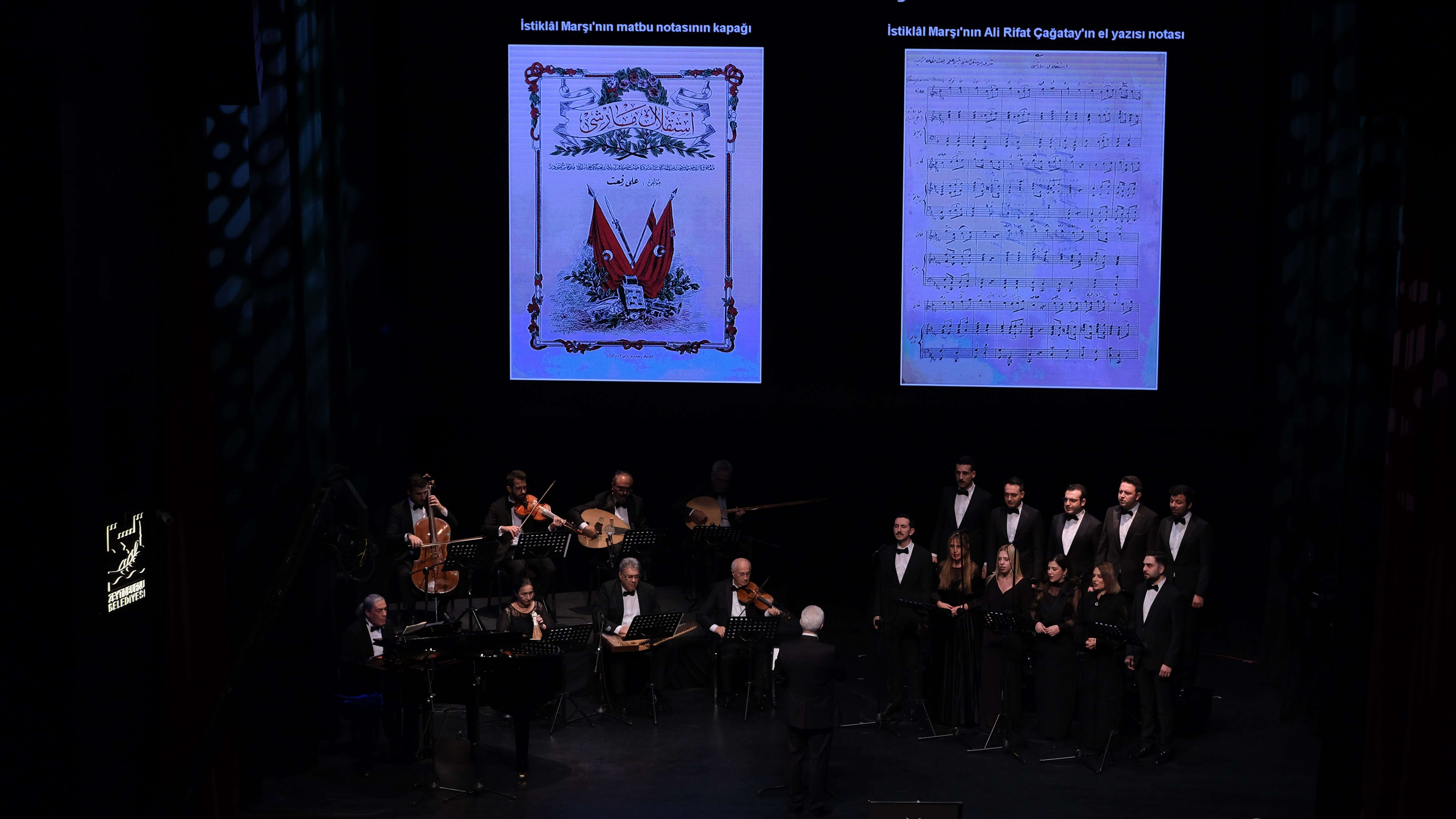 Konuşmaların tamamlanmasının ardından ise sahneye koro çıktı. Koro, ilk olarak Mehmet Âkif Ersoy’un İstiklal Marşı, Bülbül ve Ordunun Duası isimli eserleri okunu. Bu eserlerin icrasının ardından ise on beş dakikalık ara verildi.