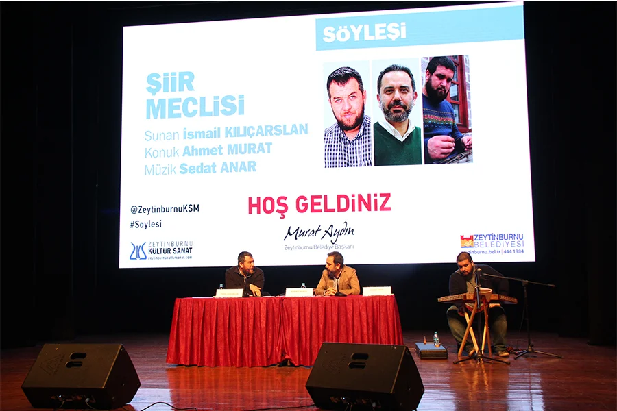 Zeytinburnu Kültür Sanat Merkezinde İsmail Kılıçarslan’ın hazırlayıp sunduğu Şiir Meclisi programı 16 Şubat’ta şair Ahmet Murat’ı ağırladı. Şairin hakikat ve dil ile ilişkisi, Ahmet Murat şiirinin 1990’lardan bugüne geçirdiği değişim ve dönüşümün konuşulduğu program İsmail Kılıçarslan’ın `Hakikat göreceli bir şey mi?` sorusu ile başladı.