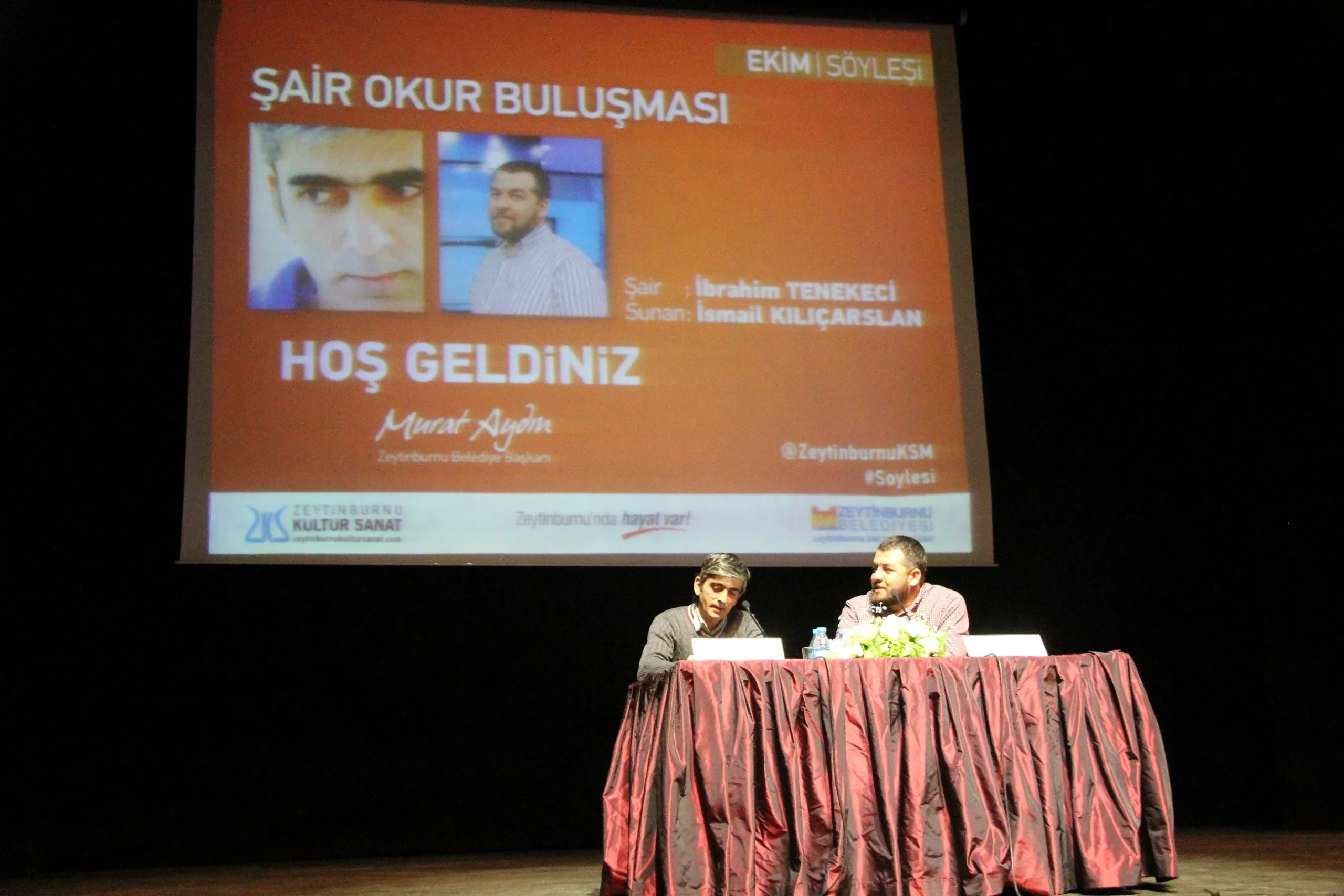 Yeni Şafak Gazetesi yazarı şair İbrahim Tenekeci, Zeytinburnu Belediyesi’nin İsmail Kılıçarslan’ın sunumuyla düzenlediği Şair Okur Buluşması söyleşisine konuk oldu. Tenekeci; şiir severlerin büyük ilgi gösterdiği söyleşide, şiir ve yazı macerasını okuyucularıyla paylaştı.
