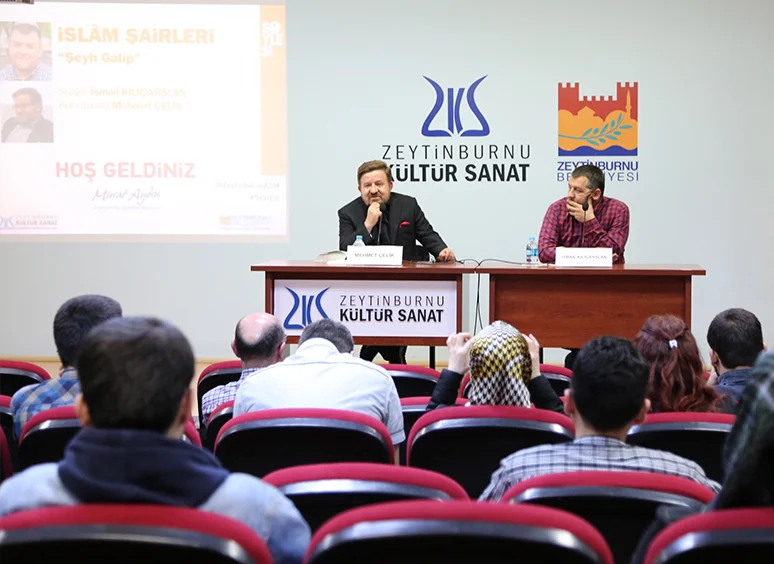 İslâm Şairleri `Şeyh Galip` İsmail Kılıçarslan&Meh… 23 Eki 2019 Görsel Galeri ❮ ❯ 1 / 4 Son Galeriler 🔍 MEZUNİYET SERGİSİ VE ŞÖLENİ, 14 HAZİRAN CUMARTESİ GÜNÜ ZEYTİNBURNU KÜLTÜR SANAT’TA GERÇEKLEŞTİ! 14.06.2025 🔍 MEZUNİYET SERGİSİ VE ŞÖLENİ, 14 HAZİRAN CUMARTESİ GÜNÜ ZEYTİNBURNU KÜLTÜR SANAT’TA! 12.06.2025 🔍 KAZLIÇEŞME SANAT KONUŞMALARINDA SEZONUN SON KONUĞU NAMIK SİNAN TURAN OLDU! 10.06.2025 🔍 BAŞKA SORULAR SÖYLEŞİ PROGRAMINDA SEZONUN SON KONUĞU PROF. DR. GÜLÇİN YAHYA KAÇAR OLDU! 02.06.2025 🔍 100 YÜZE İMZA VE SÖYLEŞİ PROGRAMINDA SEZONUN SON KONUĞU SADIK YALSIZUÇANLAR OLDU! 30.05.2025 🔍 ZKS 26 MAYIS-1 HAZİRAN HAFTALIK ETKİNLİK TAKVİMİ 26.05.2025 🔍 ZEYTİNBURNU KİTAPÇISI BULUŞMALARI’NDA SEZONUN SON KONUĞU PROF. DR. MEHMET SAMSAKÇI OLDU! 24.05.2025 🔍 NABİ AVCI’NIN KONUK OLDUĞU PEYAM-I GARB’TA SEZONUN SON PROGRAMI GERÇEKLEŞTİ! 23.05.2025