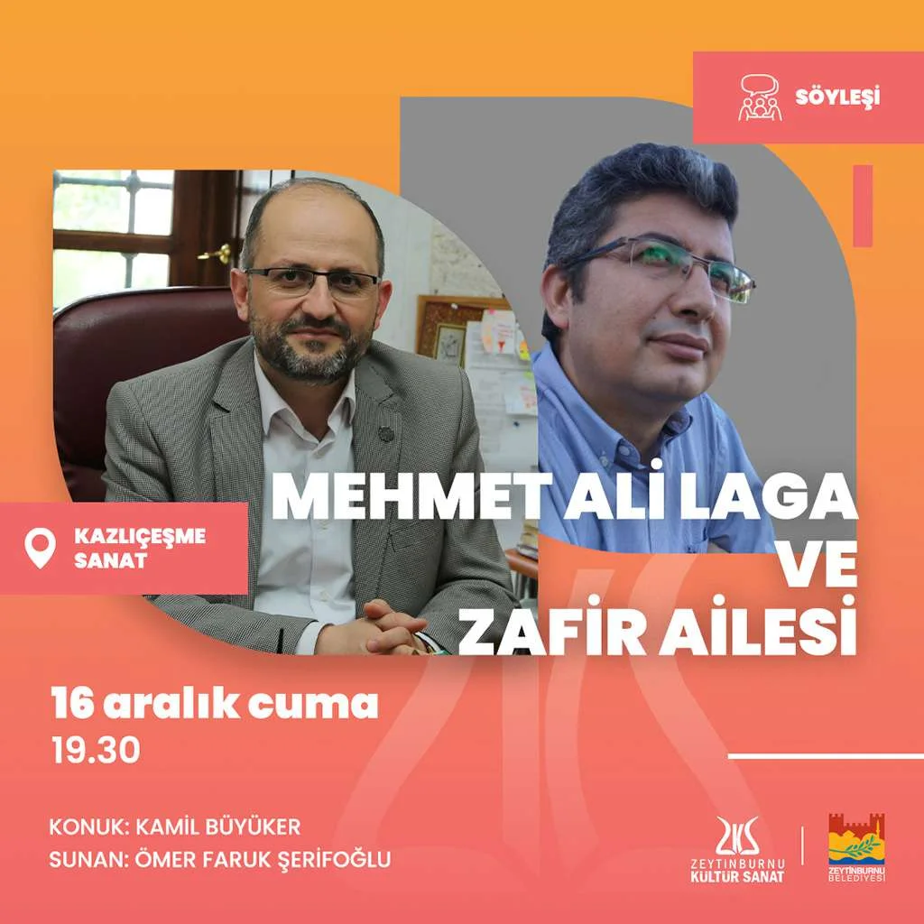 Kazlıçeşme Sanat’ta 16 Aralık Cuma akşamı Vefatının 75. Yılında Mehmet Ali Laga – Asker ve Ressam sergisinin küratörü Ömer Faruk Şerifoğlu, Yozgat Bozok Üniversitesi Öğretim Görevlisi Kâmil Büyüker ile Mehmet Ali Laga’nın mensubu bulunduğu Zâfir Ailesi hakkında bir söyleşi düzenledi.