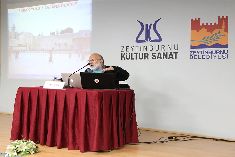 Zeytinburnu Kültür Sanat Merkezinde Fotoğraflarla Kudüs'ün Hikayesi’ni anlatan Ömer Lekesiz, seminer dizisinin Nisan ayı oturumunda Kudüs’te Eski şehrin dışındaki üç ilahi dinin kutsal yapılarından bahsetti.