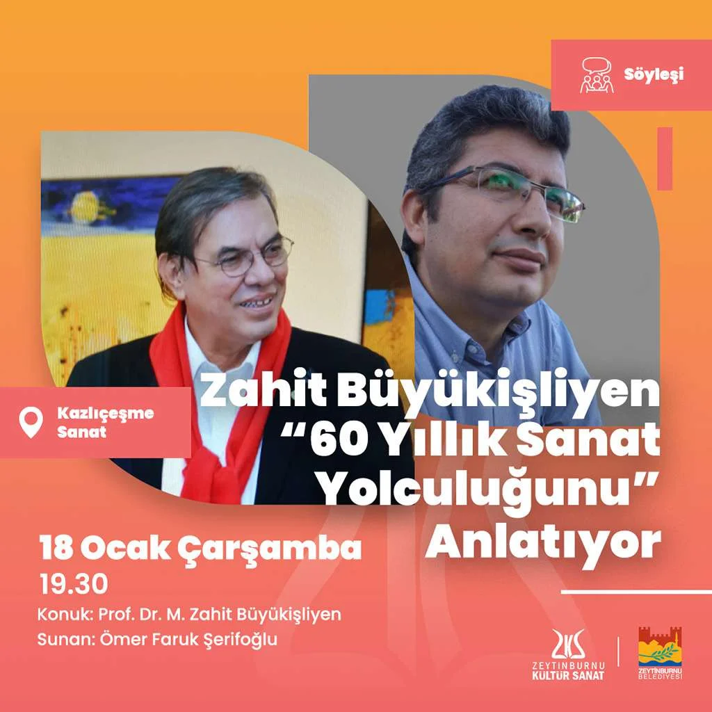 Kazlıçeşme Sanat’ta 18 Ocak Çarşamba akşamı Yeldeğirmenlerine Karşı – M. Zahit Büyükişliyen Retrospektif Sergi’nin küratörü Ömer Faruk Şerifoğlu, ressam M. Zahit Büyükişliyen ile ressamın 60 yıllık sanat hayatını konuştu.