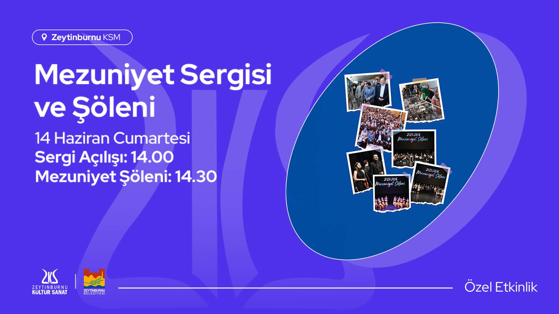 Zeytinburnu Kültür Sanat’ta kurs sezonu, sergi açılışı ve şölenle tamamlanıyor. 14 Haziran Cumartesi günü saat 14.00’te açılacak mezuniyet sergisinde ZKS kursiyerlerinin eserleri sanatseverlerle buluşacak. Hemen ardından saat 14.30’da başlayacak mezuniyet şöleniyle kursiyerlerin mezuniyet coşkusu paylaşılacak.
