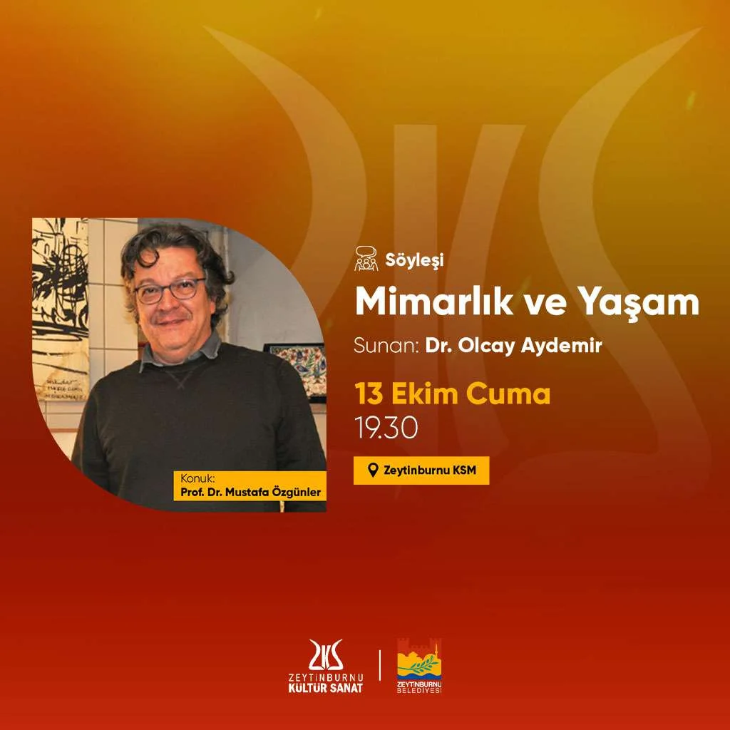 Dr. Olcay Aydemir’in sunumuyla Mimarlık ve Yaşam Söyleşileri Zeytinburnu Kültür Sanat’ta devam ediyor. 13 Ekim akşamı saat 19.30’da başlayan Ekim ayı söyleşisinin konuğu Prof. Dr. Mustafa Özgünler oldu.