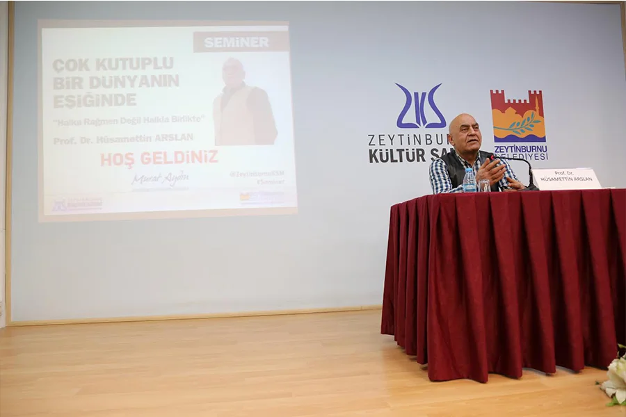 Prof. Hüsamettin Arslan `Çok Kutuplu Bir Dünyanın Eşiğinde` başlıklı seminerinde halka rağmen değil halkla birlikte gerçekleştirilecek ilk sistem değişikliğinin öneminden sözetti.