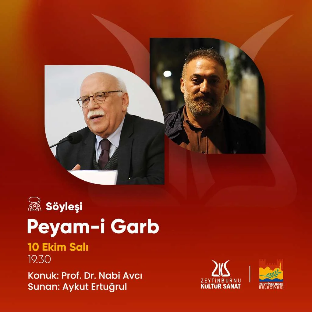 Aykut Ertuğrul’un sunumu ve Nabi Avcı’nın katılımıyla her ay bir kitaptan hareketle kültür ve sanat üzerine söyleşilen Peyam-i Garb programı Zeytinburnu Kültür Sanat’ta başladı. 2023-2024 kültür sanat sezonunun 10 Ekim akşamı saat 19.30’da yapılan ilk programında, söyleşinin hareket noktası René Guénon’un meşhur kitabı Modern Dünyanın Bunalımı oldu.