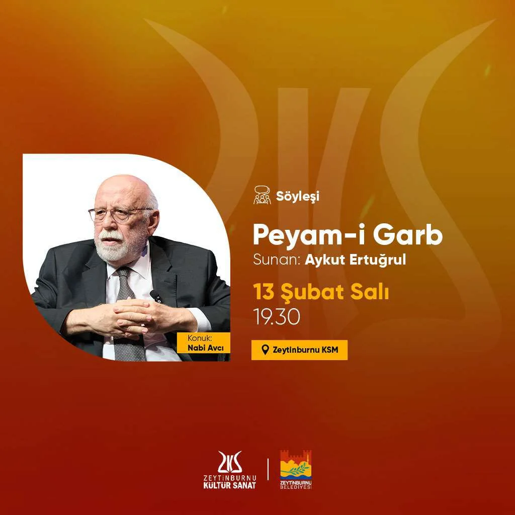 Aykut Ertuğrul’un sunumu ve Nabi Avcı’nın katılımıyla her ay bir kitaptan hareketle kültür ve sanat üzerine söyleşilen Peyam-i Garb programı Zeytinburnu Kültür Sanat’ta devam ediyor. 13 Şubat akşamı saat 19.30’da yapılan programda, söyleşinin hareket noktası, bu ay içerisinde kaybettiğimiz önemli düşünce insanlarımızdan Alev Alatlı’nın, Suç Ortağı Hollywood kitabı oldu.
