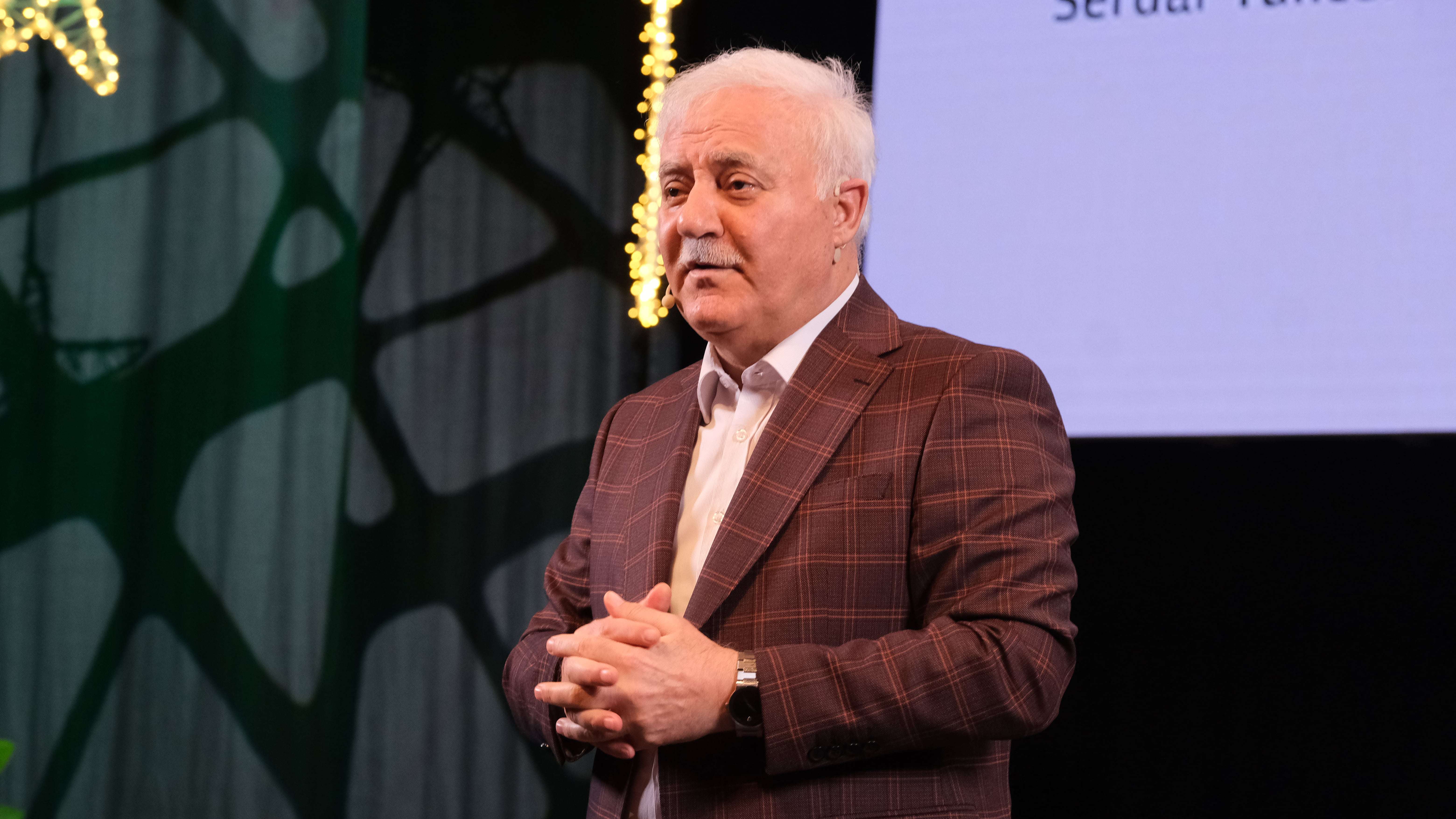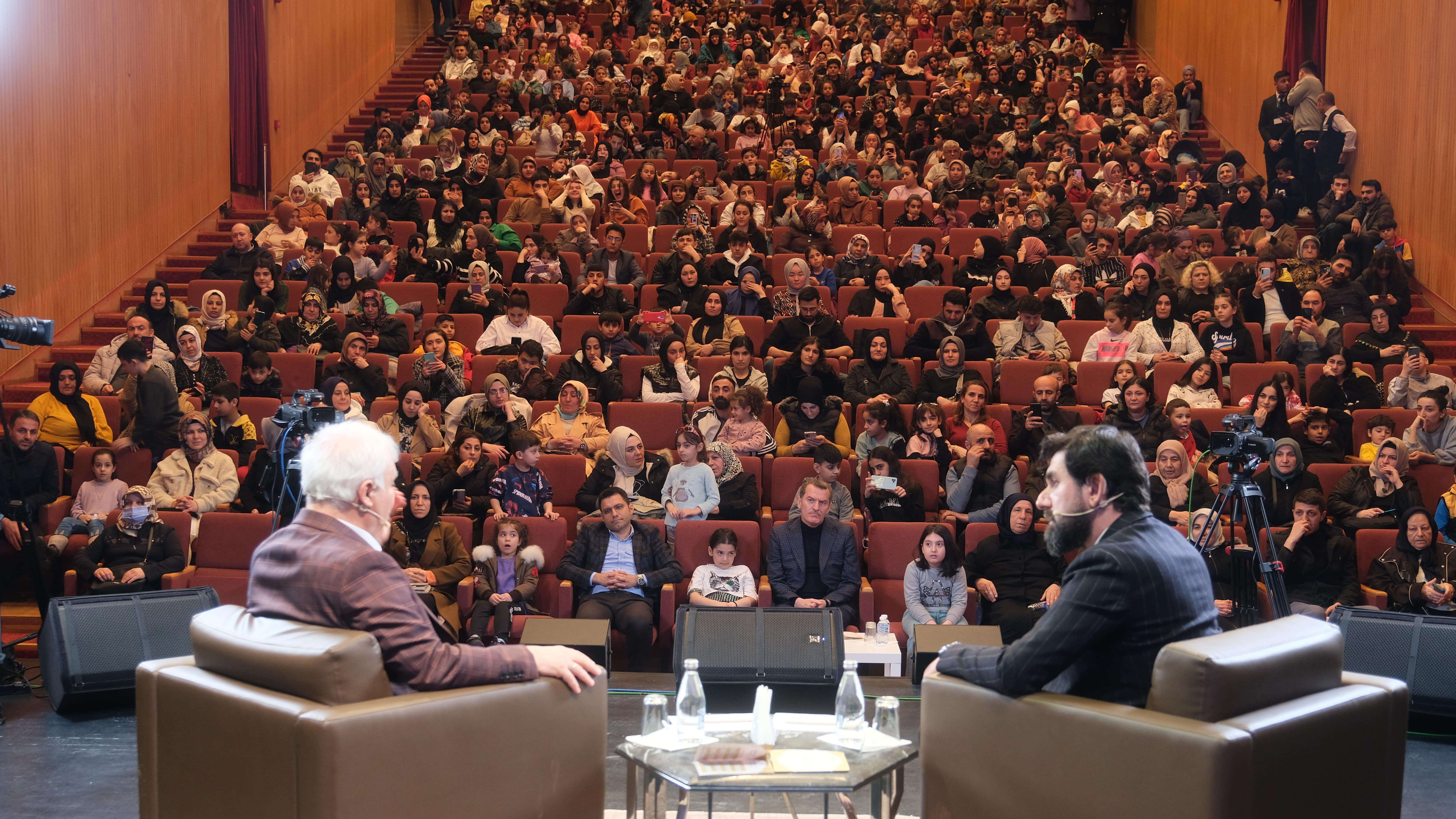 Ardından sahneye bu kez gecenin konuğu Nihat Hatipoğlu çıktı. Serdar Tuncer, kısa bir konuşmanın ardından sahneyi Nihat Hatipoğlu’na bıraktı. Hatipoğlu, konuşmasının başında yaşadığımız deprem felaketinden sonra Ramazan’ın gelişi ile ilgili konuştu: “Ramazan ayındayız, çok özel günlerdeyiz, yarısını geçtik. Artık istiğfar ve veda günleri Ramazan için. Ramazan tam zamanında yetişti bize. Çünkü bir felaket yaşadık. Felaketin akabinde dağılmıştık yani. Hakikaten dağılmıştık. Allah Ramazan’da topladı bizi. Savrulmuştuk, Allah bizi bir araya getirdi. Belki yara, kapanmayacak bir yara, vefat edenler açısından söylüyorum. Ama en azından… İki türlü kader var biliyorsunuz: Bir küllî kader, Allah’ın iradesi, buna iman ediyoruz; bir de bizim irademiz var. Bizim irademiz, sadece tedbir almakla yükümlüyüz. Bize rağmen bir şey olur mu, olur.”