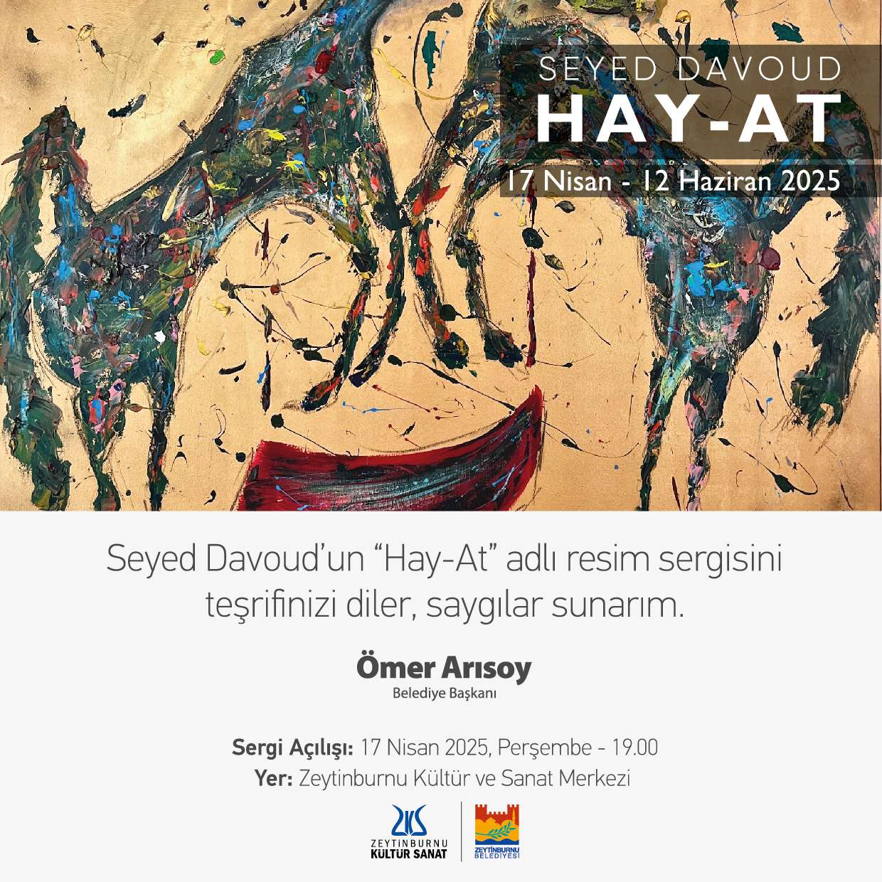 Zeytinburnu Kültür Sanat, çok önemli bir sergiye daha ev sahipliği yapmaya hazırlanıyor. 17 Nisan Perşembe günü 19.00’da Seyed Davoud’un “Hay-At” adlı resim sergisinin açılışı gerçekleştirilecek. Seyed Davoud’un, at figürüne odaklanan ve son dönem eserlerini bir araya getiren sergi, 12 Haziran tarihine kadar Zeytinburnu Kültür Sanat’ta ziyaret edilebilecek.