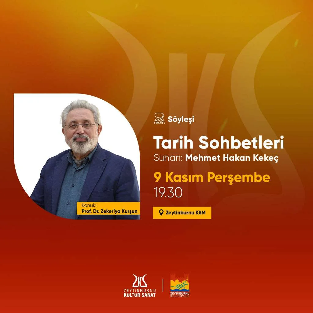 Mehmet Hakan Kekeç’in sunduğu Tarih Sohbetleri’nin kasım ayı programı 9 Kasım akşamı Zeytinburnu Kültür Sanat’ta gerçekleşti. Tarihin farklı dönemlerinden farklı konuların uzmanlarıyla konuşulduğu Tarih Sohbetleri’nde kasım ayının konuğu Prof. Dr. Zekeriya Kurşun oldu.