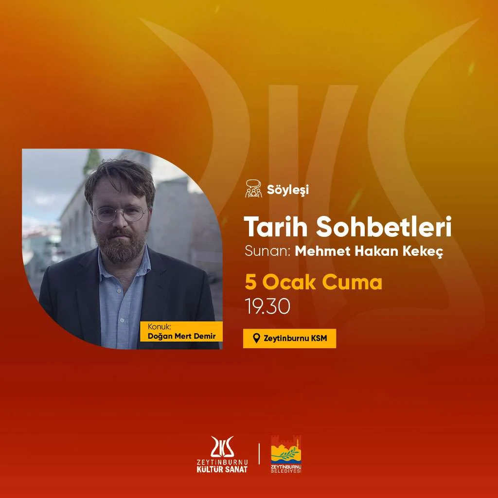 Mehmet Hakan Kekeç’in sunduğu Tarih Sohbetleri’nin ocak ayı programı 5 Ocak akşamı Zeytinburnu Kültür Sanat’ta gerçekleşti. Tarihin farklı dönemlerinden farklı konuların uzmanlarıyla konuşulduğu Tarih Sohbetleri’nde ocak ayının konuğu Doğan Mert Demir oldu.