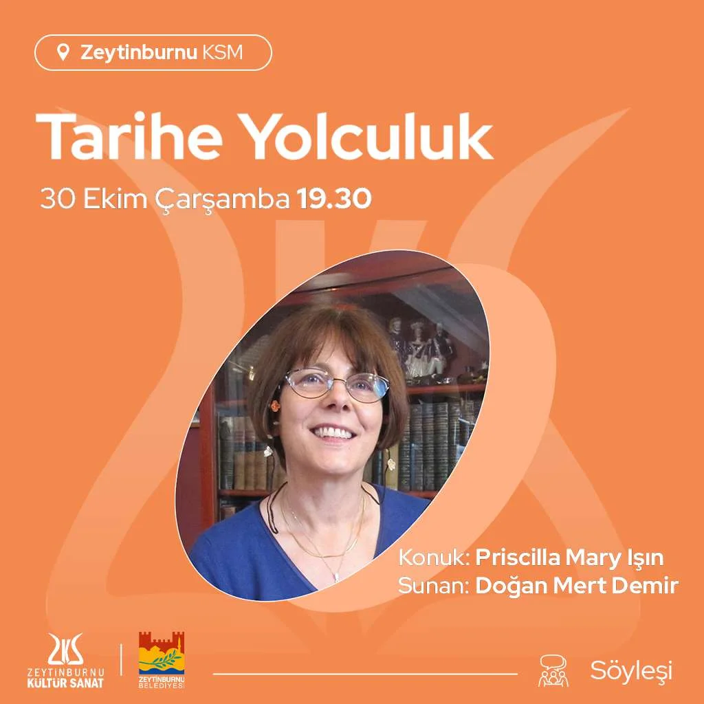 Zeytinburnu Kültür Sanat’ın yeni sezonunda Doğan Mert Demir moderatörlüğünde; her ay tarihin başka bir noktasına temas ediliyor. Alanında uzman konuklarla yapılan bu keşif yolculuğunda geçmiş ile günümüz arasında bir köprü kuruluyor. Doğan Mert Demir’in ekim ayındaki konuğu Priscilla Mary Işın oldu. 30 Ekim Çarşamba akşamı gerçekleşen söyleşide Osmanlı Mutfağı Tarihi ele alındı.