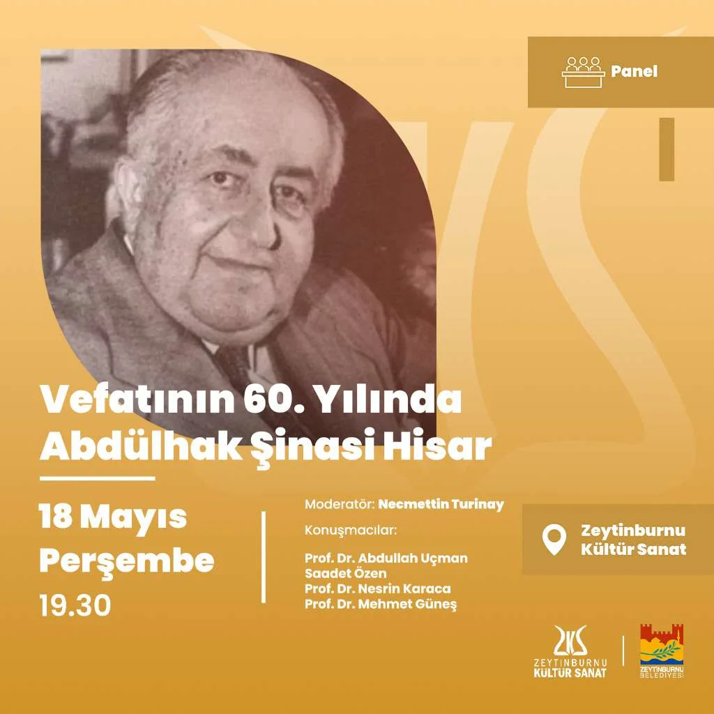 Necmettin Turinay panelin açılışında Abdülhak Şinasi Hisar’ın yazarlığı, eserleri ve hayatı hakkında genel bilgiler verdi. Turinay, konuşmasında Abdülhak Şinasi Hisar’ın vefatını şu sözlerle anlattı; “Geçtiğimiz 3 Mayıs tarihi onun 60. ölüm yıldönümüne denk geliyordu. Kendisi, 1963 yılında, Mayıs’ın 3’ünde bir kurban bayramı günü vefat ediyor. Kendisi hiç evli olmadığı için çoluğu, çocuğu, hanımı bulunmadığı için evde bulunan hizmetçisi de bayram dolayısı ile kendisinden izin alıp gittiği için Hisar’ın ölümünden kimsenin haberi olmamış. Yunus Emre’nin bir mısrası var: ‘Bir garip öldü diyeler/ Üç gün sonra duyalar.’ dediği gibi… Yahut da diyelim Mehmet Âkif’in bir mısrası, ‘Sessiz yaşadım, beni kim nereden bilecektir, hatırlayacaktır’ dediği gibi…”