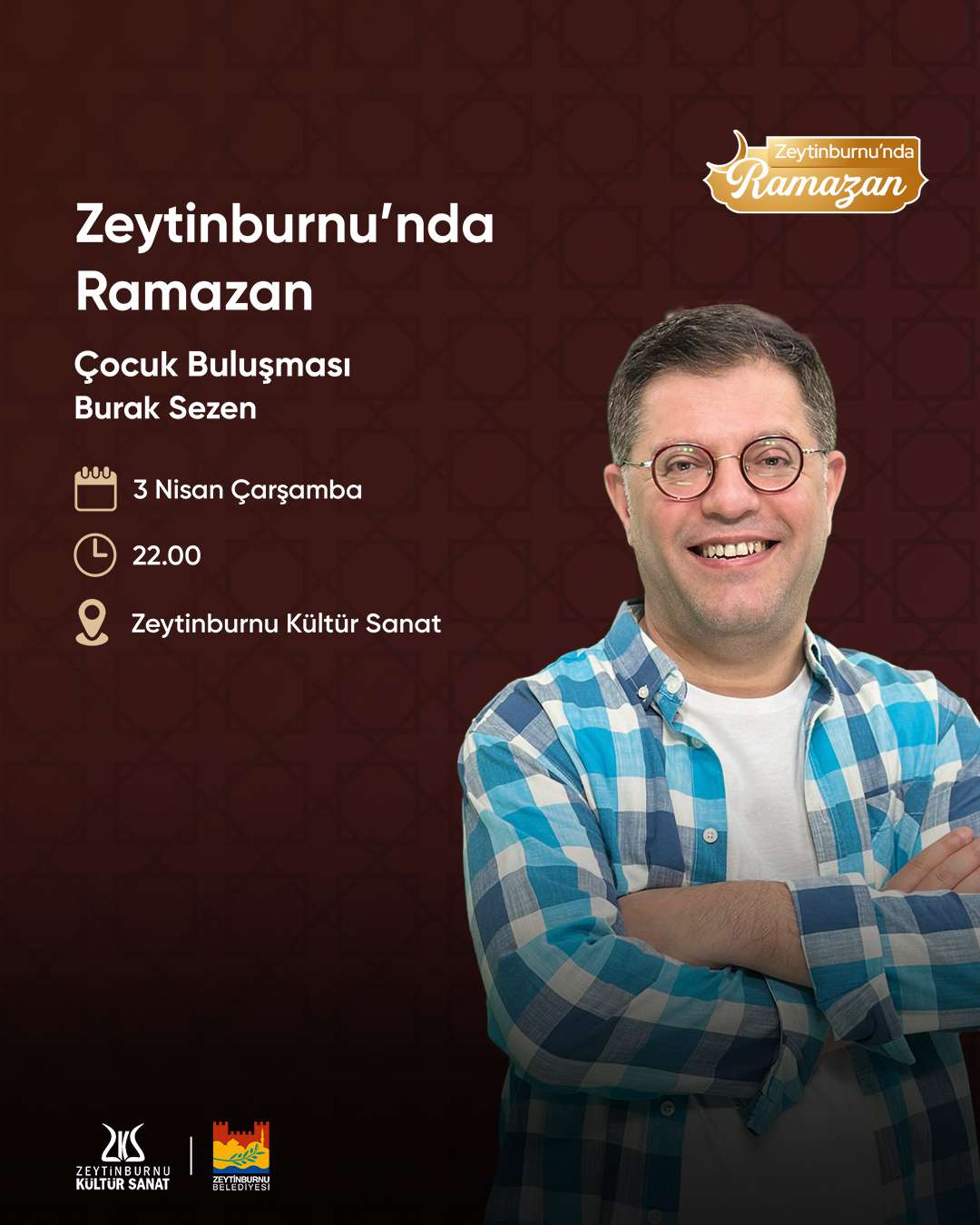 Ramazan’ın neşesine neşe katan çocuklar da Ramazan’da Zeytinburnu Kültür Sanat’ta buluşuyor. 3 Nisan akşamı Burak Sezen’in hazırladığı programa tüm çocuklarımızı bekliyoruz.