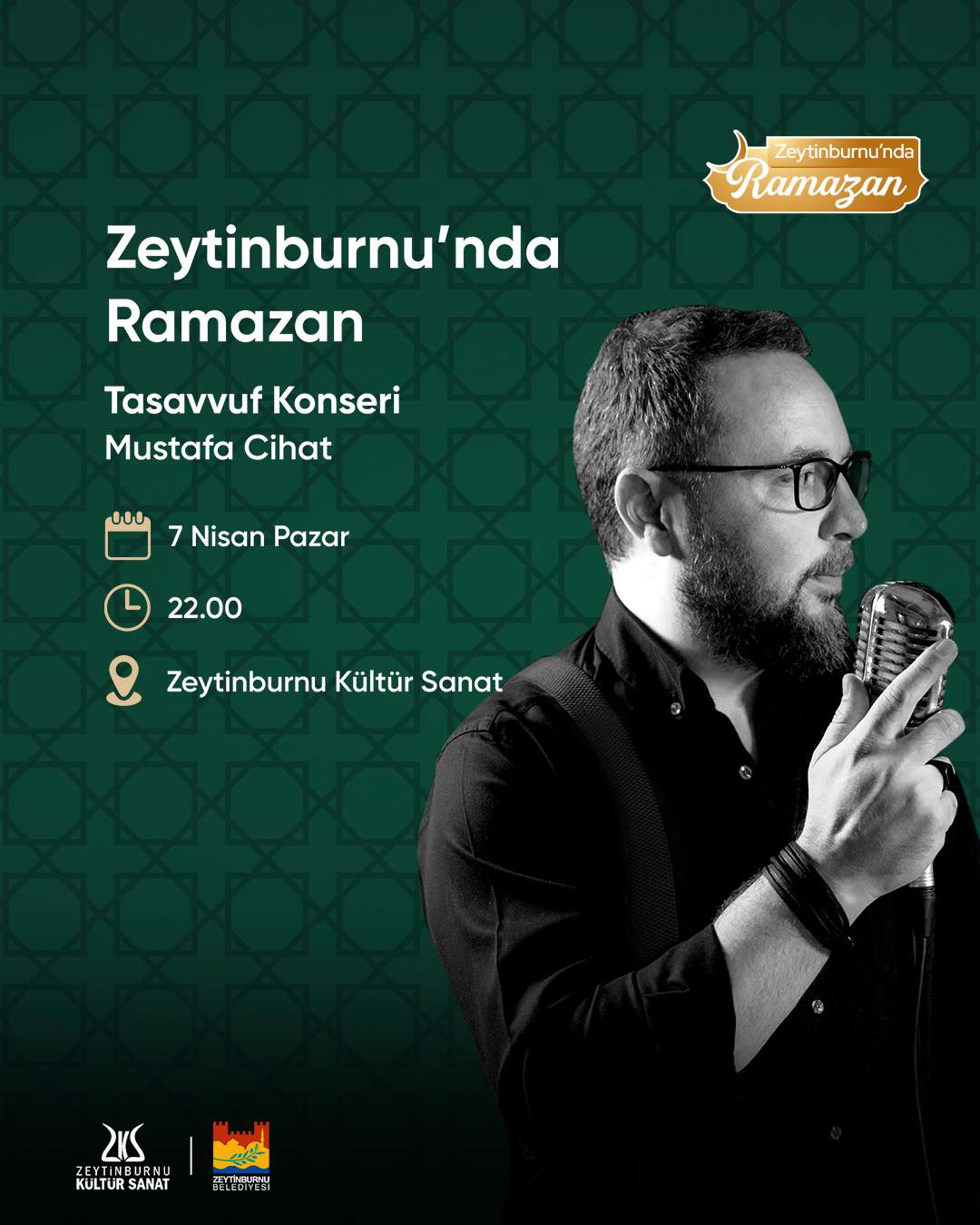 Her hafta birbirinden kıymetli ses sanatçılarının icra edeceği tasavvuf konserlerinin ikincisinde Mustafa Cihat sahne alıyor. Mustafa Cihat’ın konseri 7 Nisan Pazar akşamı saat 22.00’de Zeytinburnu Kültür Sanat’ta yapılacak.