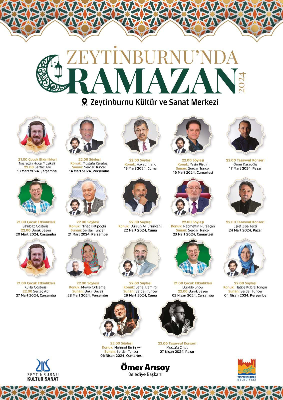 Zeytinburnu Kültür Sanat, birbirinden özel programlarla bu ramazan konuklarını bekliyor. Konuklu söyleşiler, önemli ses sanatçılarının konserleri ve çocuklar için özel programlar bu ramazan Zeytinburnu Kültür Sanat’ta.