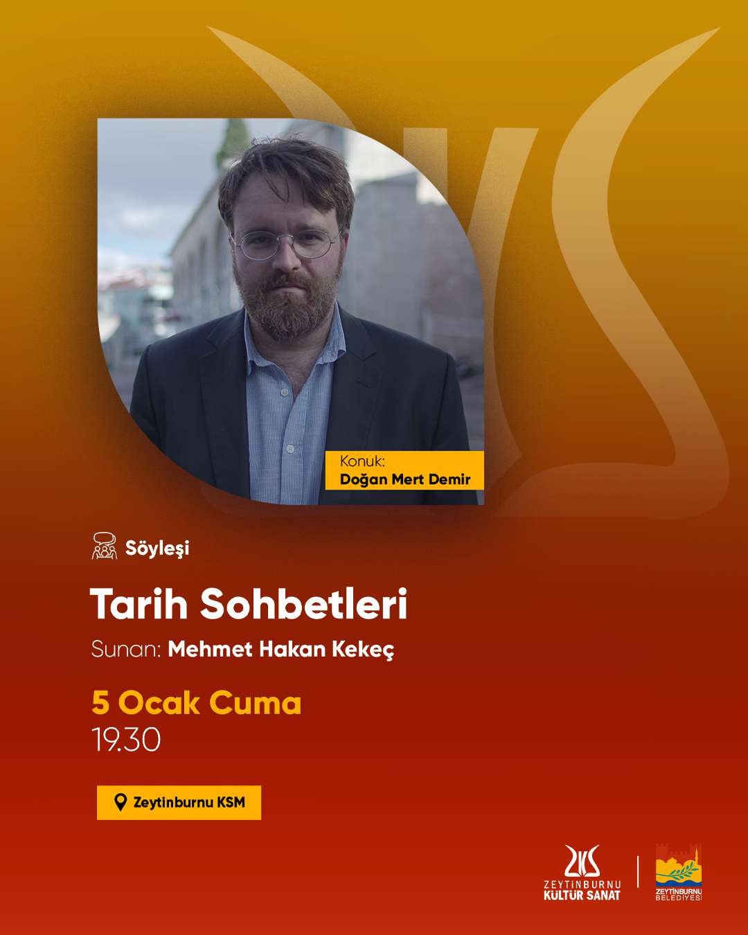 Tarih Sohbetleri programında Mehmet Hakan Kekeç, her ay yeni bir konukla tarihe ışık tutuyor. İnsanlığın en eski çağlarından modern zamanlara tarihin önemli olayları, önemli değişimleri, Türk milletinin tarih içindeki yeri gibi pek çok önemli başlık; alanın kıymetli isimleriyle birlikte bütüncül bir yaklaşımla değerlendirilecek. Mehmet Hakan Kekeç, ocak ayında Doğan Mert Demir ile “Selahaddin Eyyubi” hakkında bir sohbet gerçekleştirecek.