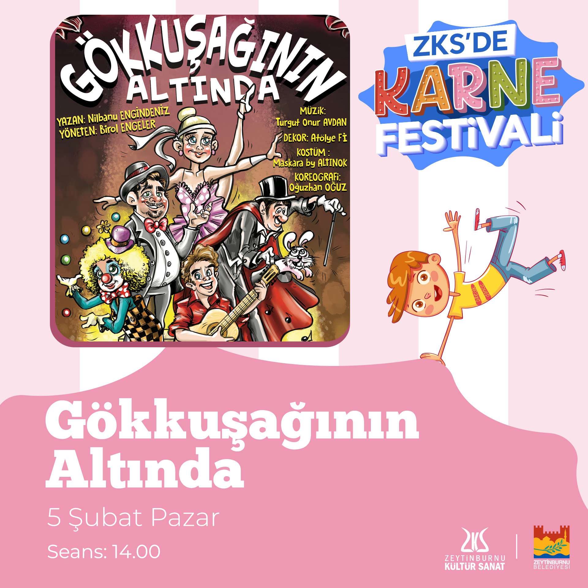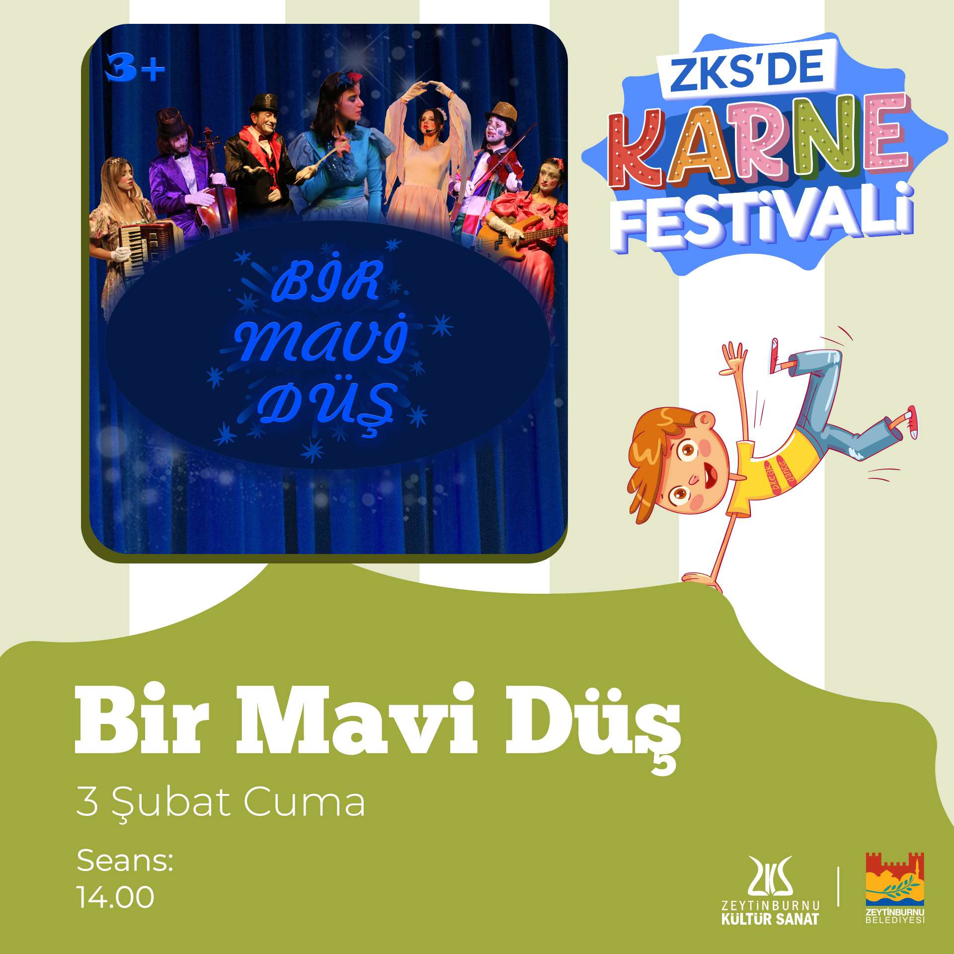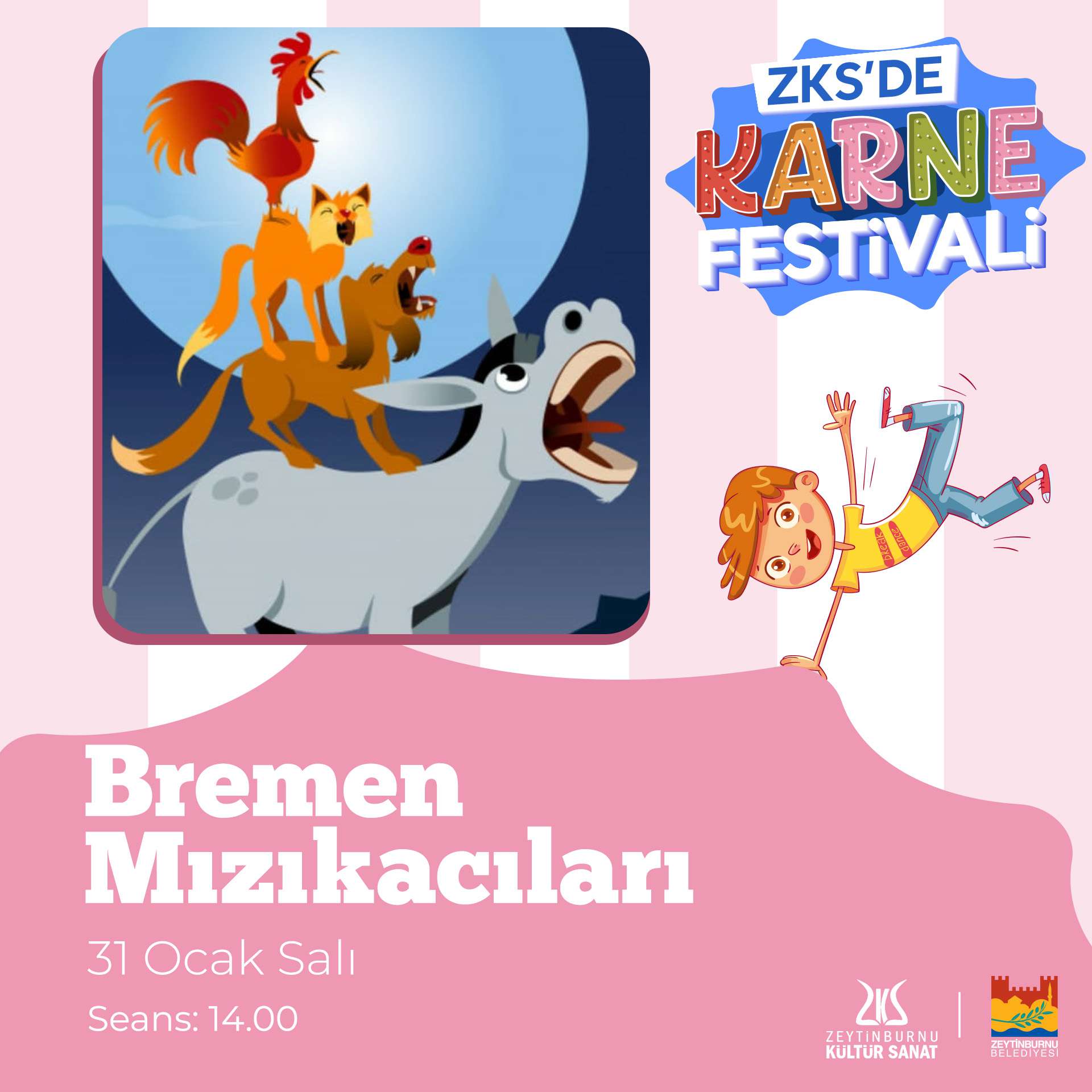 Zeytinburnu Kültür Sanat, karnesini alan bütün öğrencileri Karne Festivali’ne bekliyor! Sosis balon, yüz boyama, animatör, maskot, karikatür, akrobasi cambaz, ilüzyon, vantrolog, bubble şov, jonglör, balon katlama ve sevimli kuklalar gösterilerinin olacağı festival, 12.00-16.00 saatleri arasında Zeytinburnu Kültür ve Sanat Merkezinde olacak.