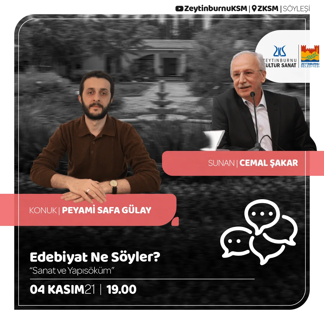 Cemal Şakar’ın sunduğu “Edebiyat Ne Söyler?” söyleşi serisinin 4 Kasım’daki konuğu Dr. Peyami Safa Gülay’dı. Postyapısalcılık ve edebiyat ilişkisi üzerinden bir söyleşi gerçekleşti.