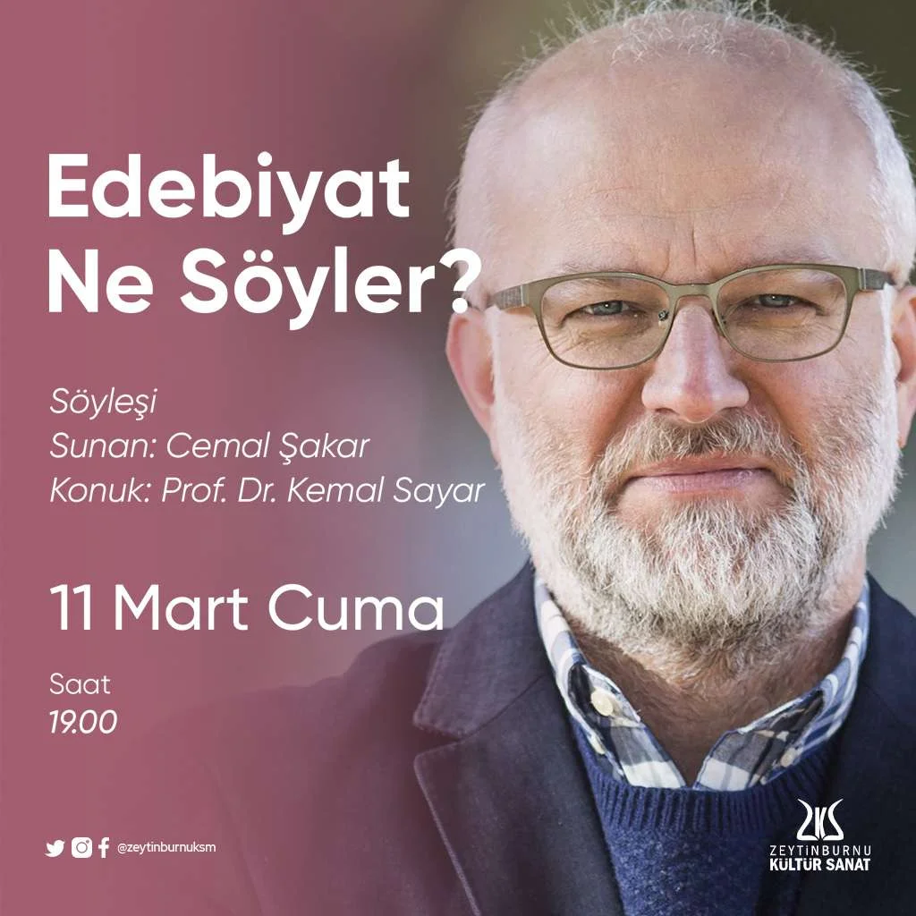 Cemal Şakar’ın sunduğu “Edebiyat Ne Söyler?” söyleşilerinin bu ayki konuğu Prof. Dr. Kemal Sayar’dı. Hava koşulları nedeniyle çevrim içi gerçekleşen söyleşi, sanat ve psikanaliz kavramları etrafında şekillendi. Edebiyatın ve psikolojinin birbirini nasıl etkileyip dönüştürdüğü tartışıldı.