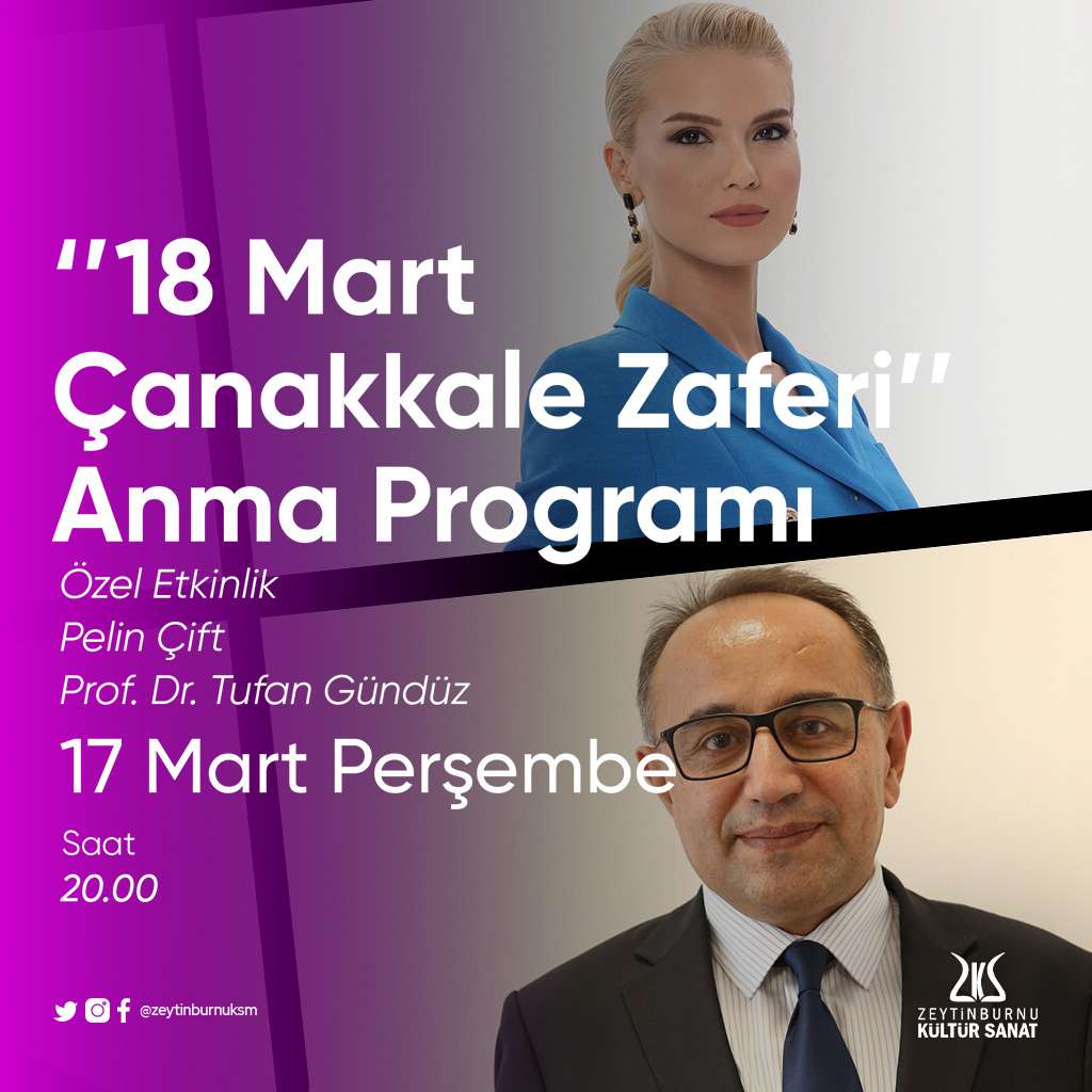Çanakkale Savaşı sadece askeri bir harekât ya da muharebe değildir. Boğazlar; konumu ve tarihi önemi itibarıyla, İstanbul; Karadeniz kapısı olması münasebetiyle, Çanakkale de Ege Denizi kapısı olarak, geçmişte taşıdıkları ve çağımızda da taşımakta olduklarıyla stratejik öneme sahip. Bu bakımdan savaşın sonlandığı 18 Mart tarihi Çanakkale Zaferi ve Şehitleri Anma günü olarak anılır. Zeytinburnu Kültür Sanat’ta düzenlenecek anma etkinliğinde Prof. Dr. Tufan Gündüz ve Pelin Çift, Çanakkale Zaferi çerçevesinde I. Dünya Savaşı, Osmanlı Devleti ve Milli Mücadele yıllarını konuşacaklarr.