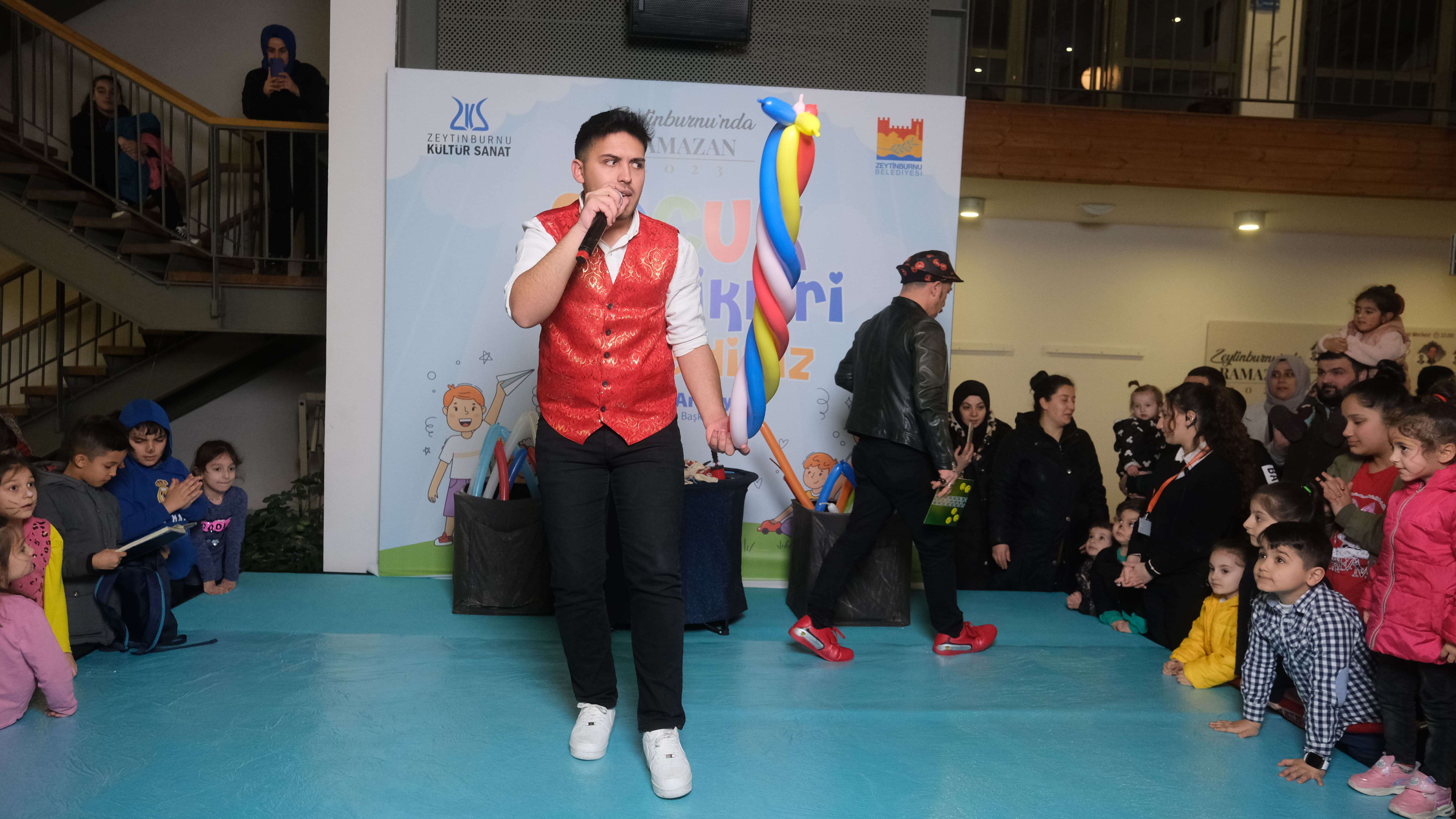 Zeytinburnu Kültür Sanat’ta çocuklar, birbirinden renkli etkinliklerle Ramazan neşesini yaşadı. 30 Mart akşamı fuaye alanında düzenlenen etkinliklerde çocuklara Osmanlı macunu ve pamuk şeker ikram edildi. Programda ayrıca yüz boyama ve sosis balon etkinlikleri de yapıldı. Zeytinburnu Belediye Başkanı Sayın Ömer Arısoy’un da ziyaret ettiği fuaye alanındaki etkinlikler balon katlama şovuyla son buldu.