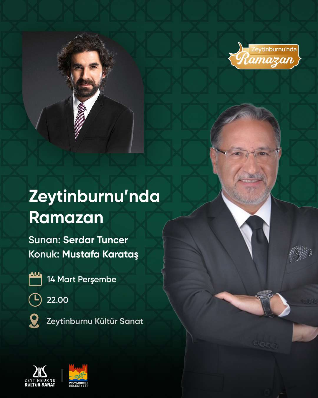 Serdar Tuncer’le Zeytinburnu’nda Ramazan programında her hafta birbirinden kıymetli konuklar Zeytinburnu’nda ramazana dair konuşuyor. Serdar Tuncer’in eşsiz sunumuyla gerçekleşecek programın ilk konuğu Mustafa Karataş. Tuncer, Mustafa Karataş’la ramazan üzerine bir sohbet gerçekleştirecek.