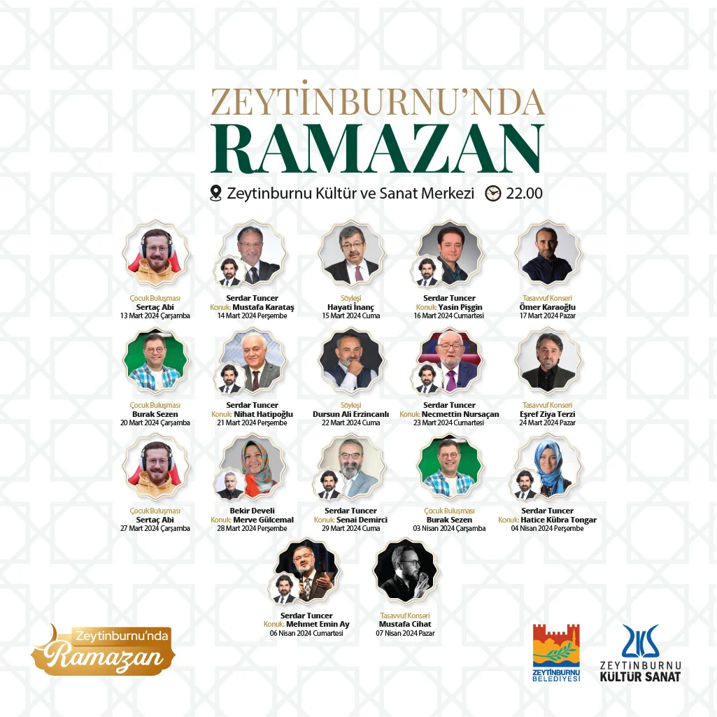 Zeytinburnu Kültür Sanat, birbirinden özel programlarla bu ramazan konuklarını bekliyor. Konuklu söyleşiler, önemli ses sanatçılarının konserleri ve çocuklar için özel programlar bu ramazan Zeytinburnu Kültür Sanat’ta.