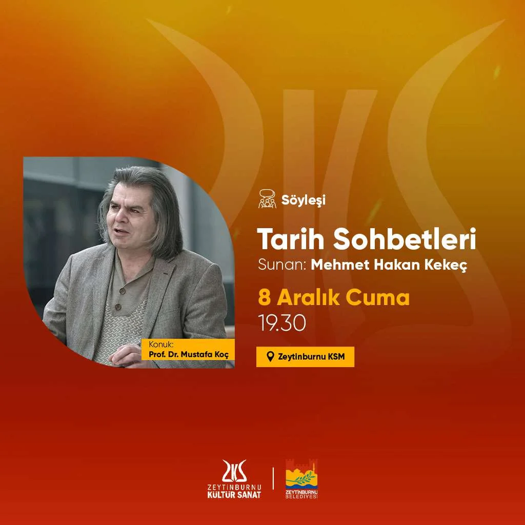 Mehmet Hakan Kekeç’in sunduğu Tarih Sohbetleri’nin aralık ayı programı 8 Aralık akşamı Zeytinburnu Kültür Sanat’ta gerçekleşti. Tarihin farklı dönemlerinden farklı konuların uzmanlarıyla konuşulduğu Tarih Sohbetleri’nde aralık ayının konuğu Prof. Dr. Mustafa Koç oldu.