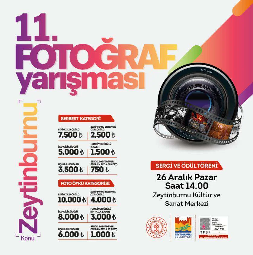 Zeytinburnu Belediyesi 11. Fotoğraf Yarışmasında serbest kategoride ve foto öykü kategorisinde dereceye giren eserlere, 26 Aralık Pazar günü ödülleri verildi. Zeytinburnu Kültür Sanat’ta gerçekleşen ödül töreninden önce dereceye giren eserlerden oluşan serginin açılışı yapıldı. Sergi 8 Ocak 2022 tarihine kadar ziyaret edilebilecek.