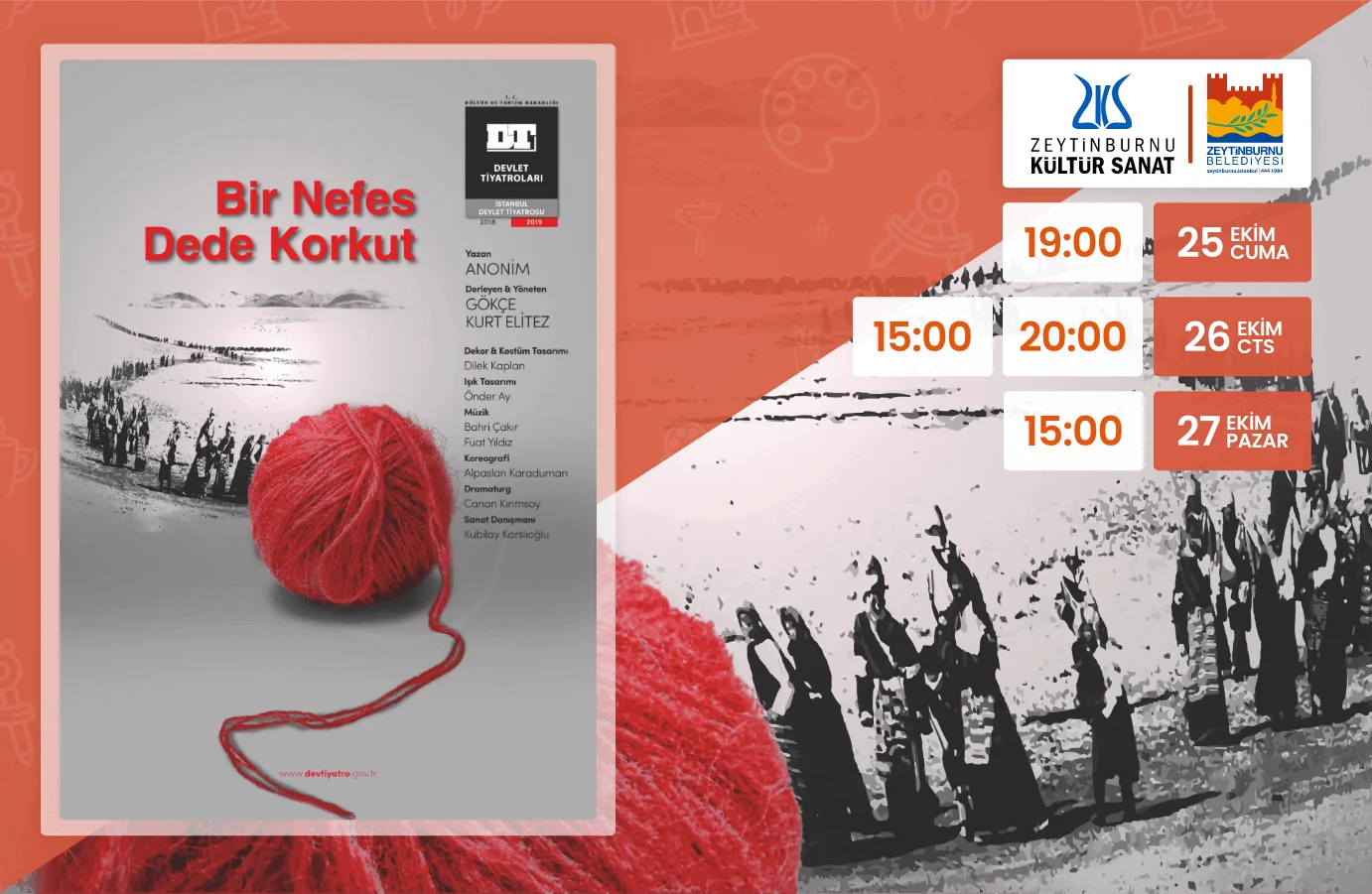 Şiirle Gelenler Şair ve şiirden yola çıkarak edebiyat, tarih, mitoloji, toplum, siyaset, günlük hayat ve insan üzerine birlikte düşünmeyi ve tartışmayı amaçlayan, Ali Ayçil'in hazırlayıp sunduğu "Şiirle Gelenler" seminerlerinin 22 Ekim Salı günü saat 19.00'da gerçekleşecek oturumunda, "Şiirde Kültür ve Doğa: Metin Eloğlu ile Cahit Zarifoğlu Arasında Bir Kıyas" konusu ele alınacak. İstanbul Devlet Türk Halk Müziği Topluluğu Zeytinburnu Kültür ve Sanat Merkezi, yeni sezonda Kültür ve Turizm Bakanlığı Devlet Müzik Topluluklarını halkımızla buluşturuyor. İstanbul Devlet Türk Halk Müziği Korosu, 24 Ekim Perşembe günü saat 20.00'de özel bir seçki ile oluşturulmuş repertuvarıyla dinleyicilerinin huzuruna çıkıyor. Edebiyat Ne Söyler? Edebiyat ve edebiyatın meselelerinin disiplinler arası bir yöntemle ele alındığı; her ay farklı bir uzmanla edebiyatın muhtelif perspektiflerden masaya yatırıldığı "Edebiyat Ne Söyler?" söyleşileri, 25 Ekim Cuma günü saat 19.00'da yazar ve eleştirmen Ömer Lekesiz'i ağırlıyor. Moderatörlüğünü usta öykücü Cemal Şakar'ın üstlendiği "Edebiyat Ne Söyler?" söyleşileri, Türk edebiyatına dair derinlikli bir kavrayış çabasıyla, alternatif bir edebiyat gündeminin imkânlarını yokluyor. Bir Nefes Dede Korkut İstanbul Devlet Tiyatroları bu hafta da nitelikli bir oyun ile Zeytinburnu Kültür ve Sanat Merkezinde boy gösteriyor. Türklerin kadim anlatısı Dede Korkut hikâyelerinden sahneye uyarlanan, Gökçe Kurt Elitez'in yönettiği "Bir Nefes Dede Korkut" tiyatro oyunu, 25 Ekim Cuma 20.00, 26 Ekim Cumartesi 15.00 ve 20.00, 27 Ekim Pazar günü ise 15.00 seanslarında izleyiciyle buluşuyor. Oyunun biletleri tüm Devlet Tiyatroları gişelerinden, ZKSM gişesinden ve biletinial.com sitesinden temin edilebilir.