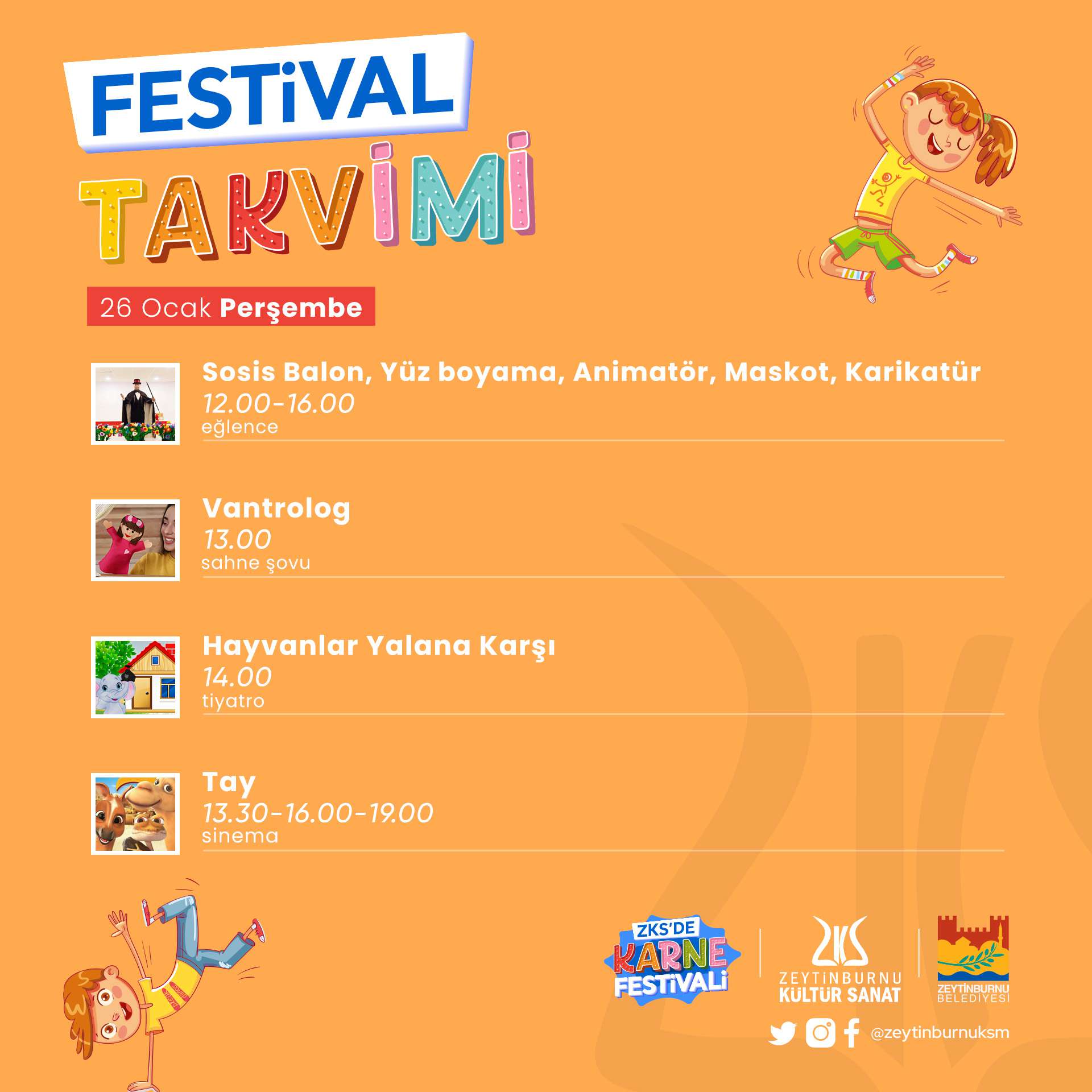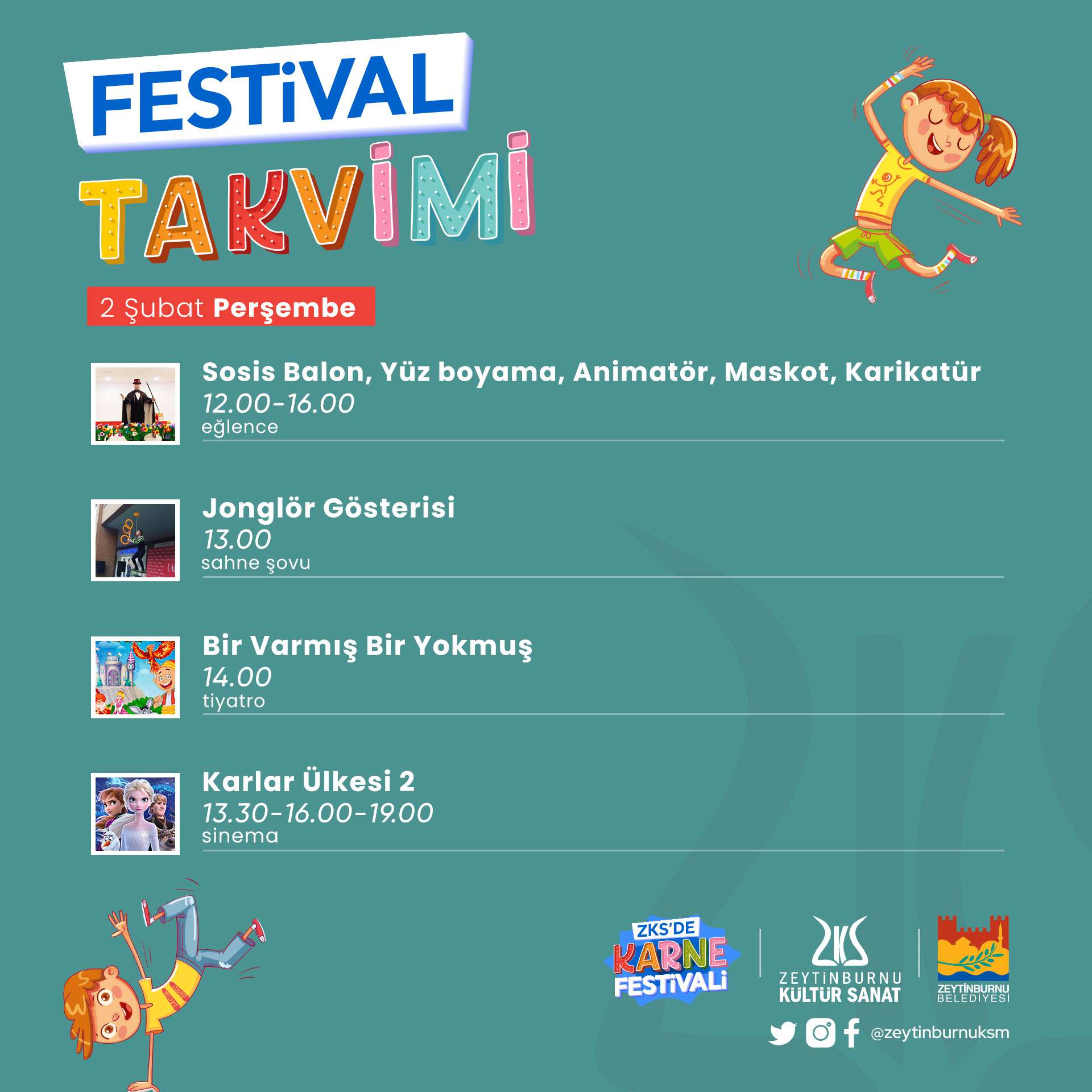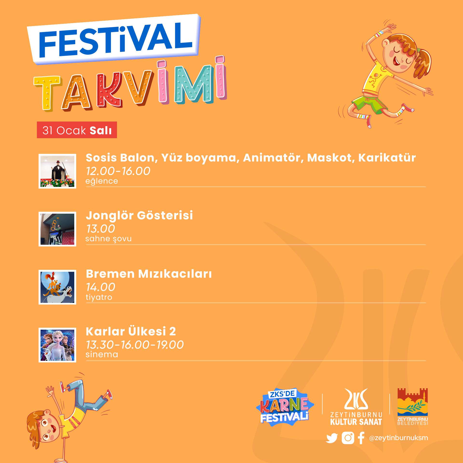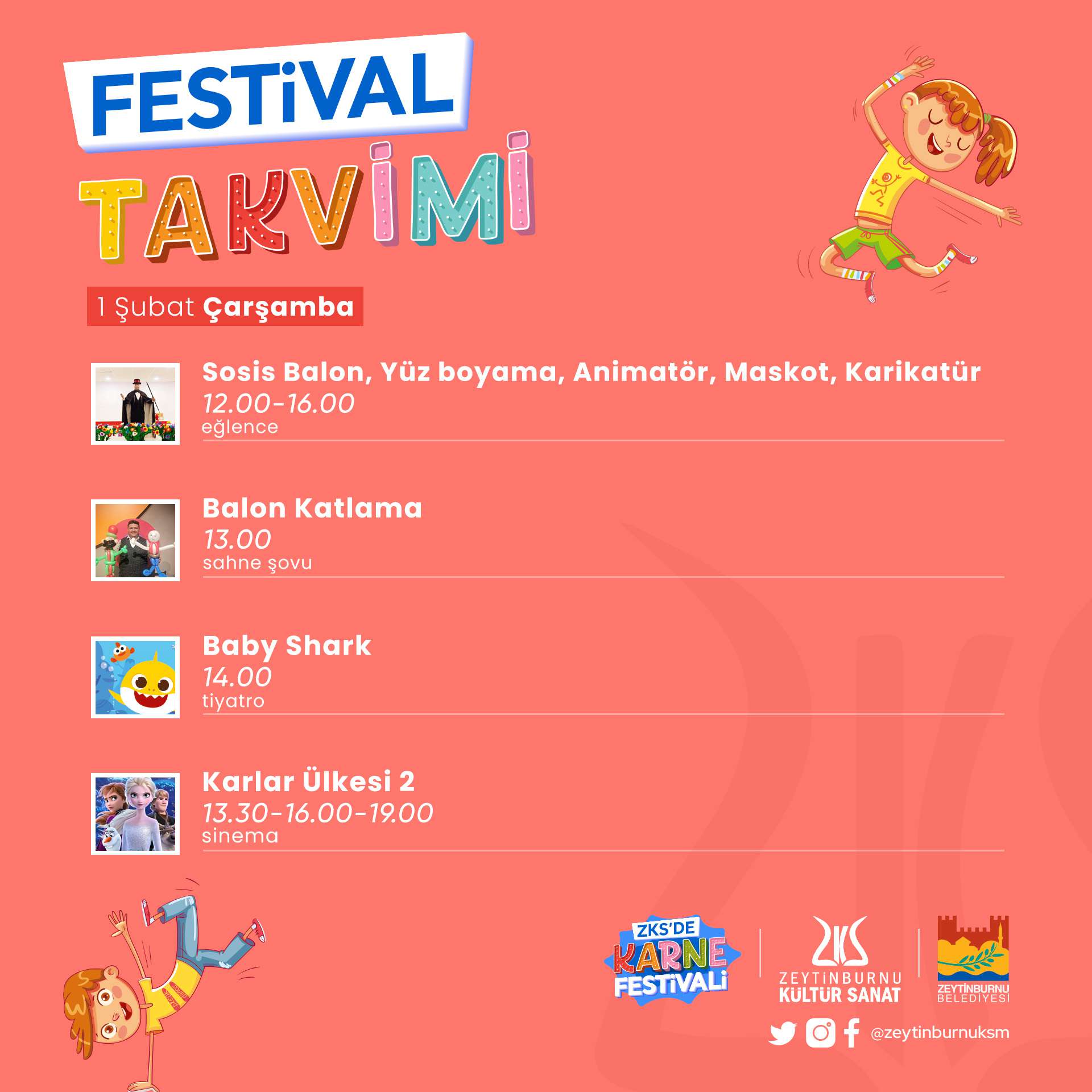 Karne Festivali’ndeki etkinlik planı ise şu şekilde: