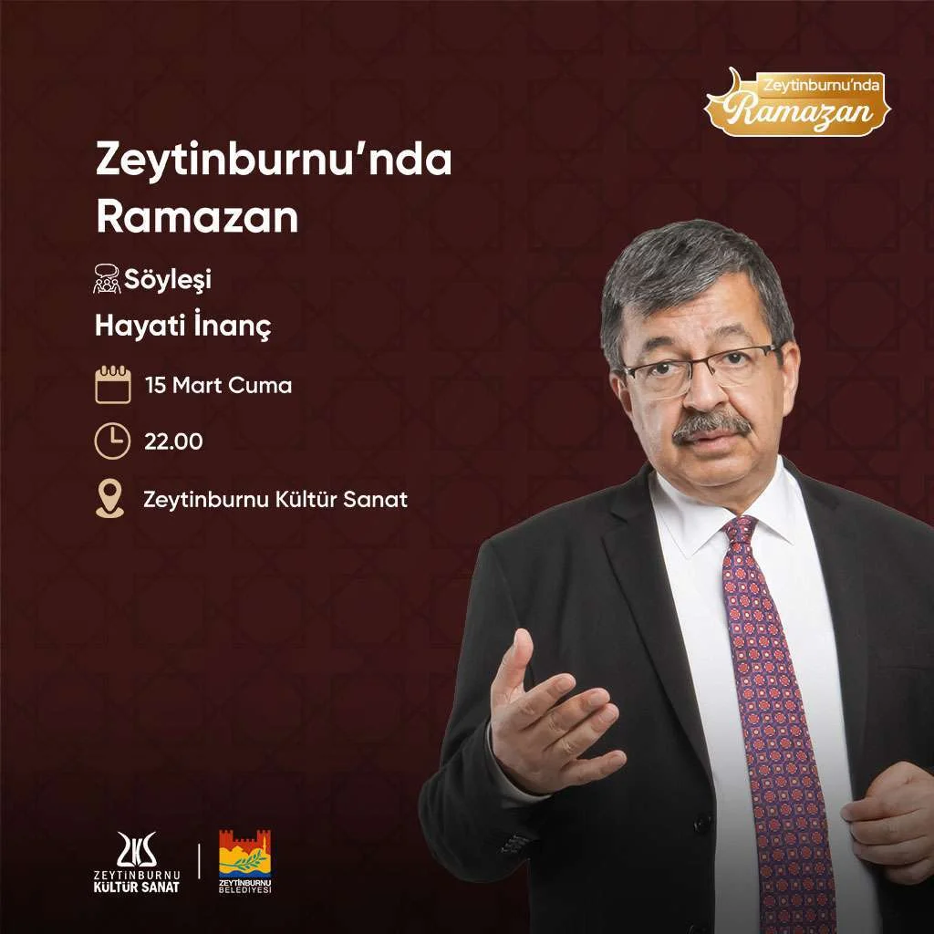 Zeytinburnu’nda Ramazan programları hız kesmeden devam ediyor. Zeytinburnu Kültür Sanat’ta yapılan programların Cuma gecesi konuğu Hayati İnanç oldu. 15 Mart Cuma akşamı gerçekleşen programda Hayati İnanç, insan olmak, Müslüman olmak ve Ramazan üzerine bir sohbet gerçekleştirdi.