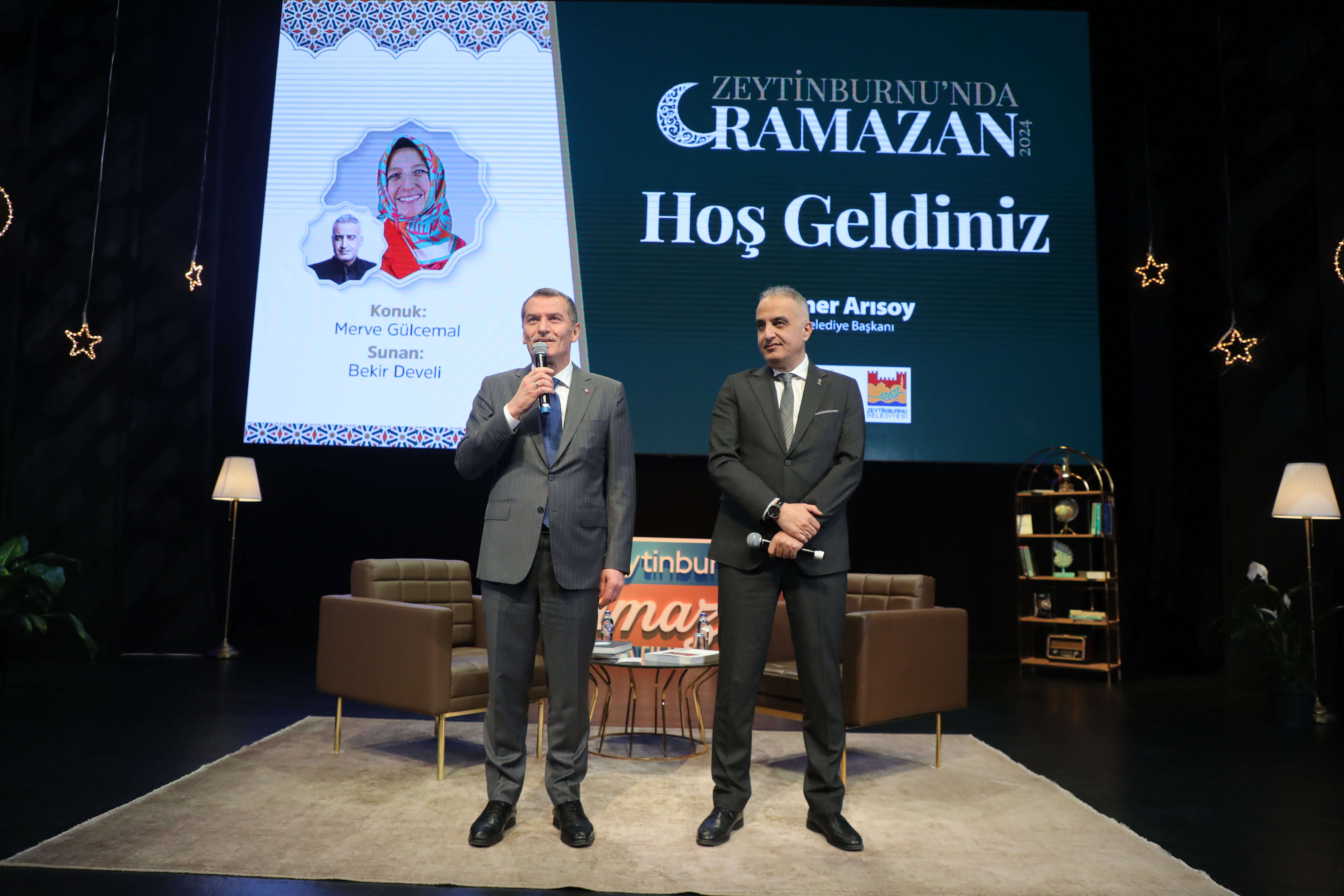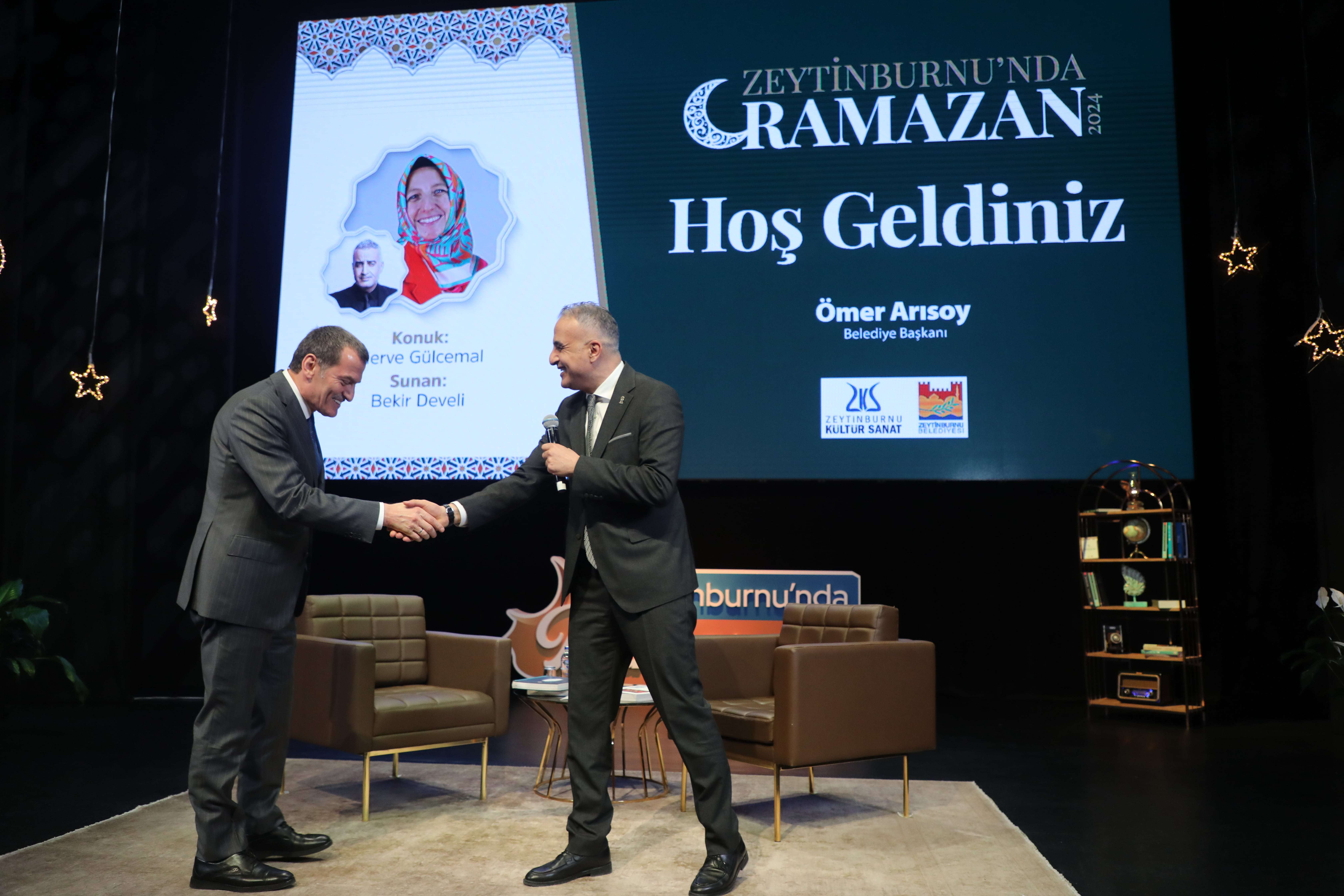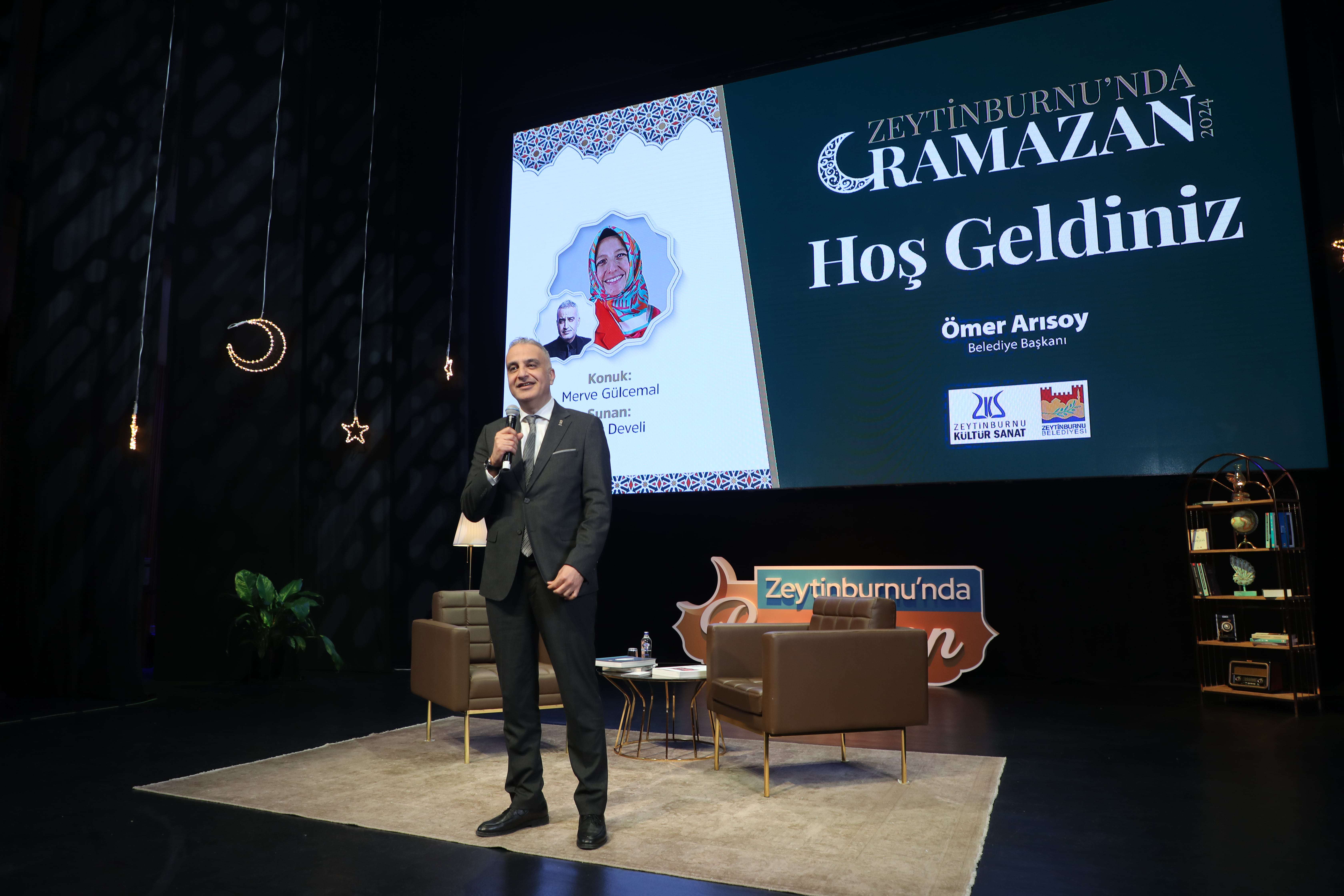Bekir Develi’nin açılış konuşmasından sonra yaptığı davet üzerine sahneye Zeytinburnu Belediye Başkanı Sayın Ömer Arısoy çıktı. Ömer Arısoy, kısa bir konuşma ile izleyicileri selamladı.
