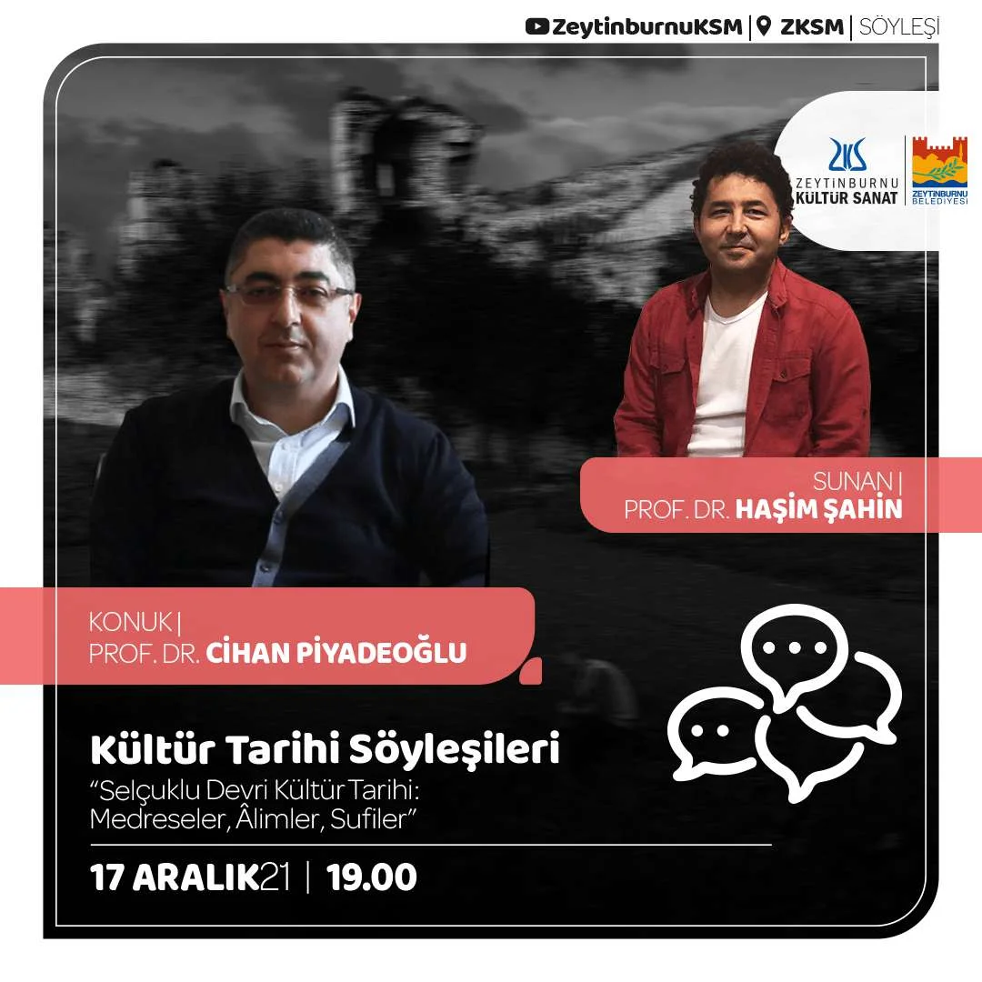 17 Aralık’ta ZKS’de gerçekleşen “Kültür Tarihi Söyleşileri” programına, Prof. Dr. Cihan Piyadeoğlu konuk oldu. Prof. Dr. Haşim Şahin’in sunduğu programda; “Selçuklu Devri Kültür Tarihi: Medreseler, Âlimler, Sufiler” üzerine bir söyleşi gerçekleşti.